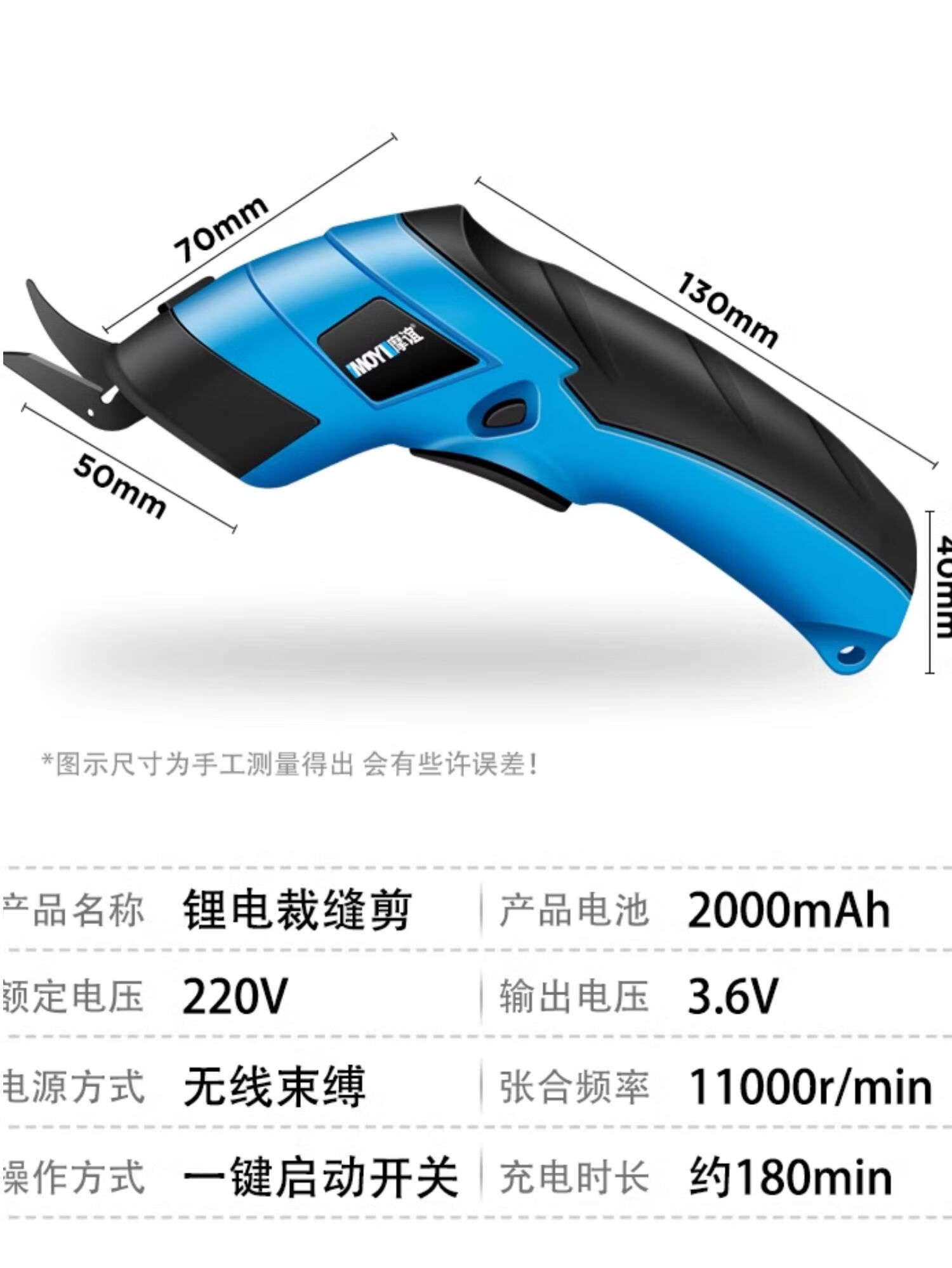 Moyi electric scissors, cloth cutting artifact, small electric scissors for tailors, clothing fabric cutting machine, electric cutting knife, 3.6V charging + tungsten steel blade * 1 in carton