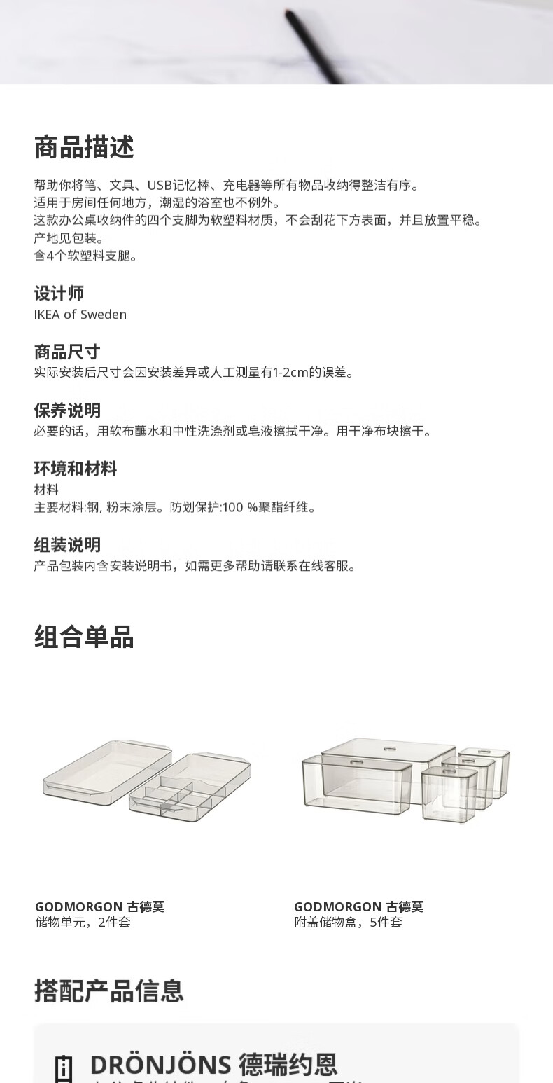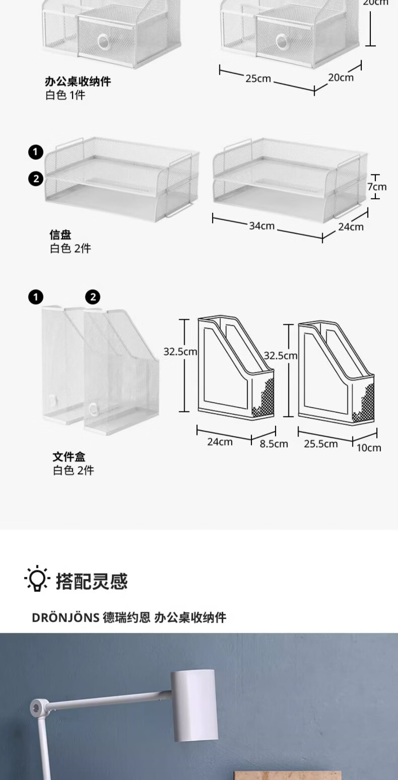 IKEA (IKEA) DRONJONS TJENA desk storage box desk storage student dormitory white file box 2 pieces
