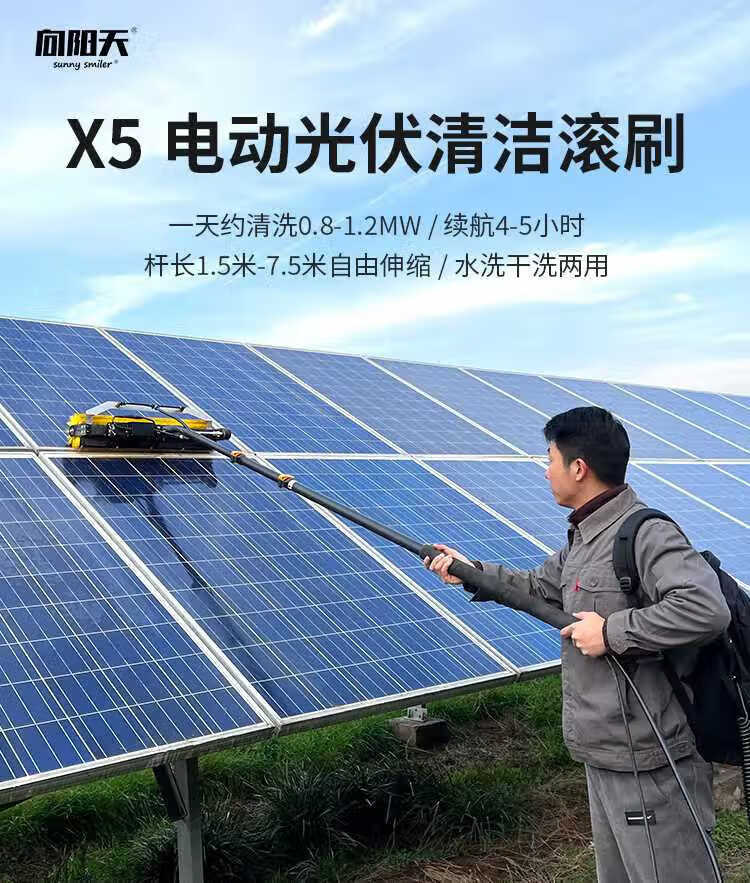 Xiangyangtian photovoltaic panel cleaning roller brush tool solar photovoltaic panel cleaning equipment cleaning robot 3.5 meters mains version_aluminum alloy pole