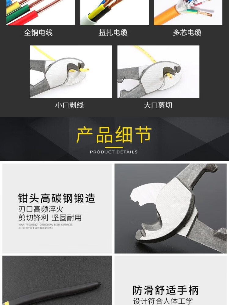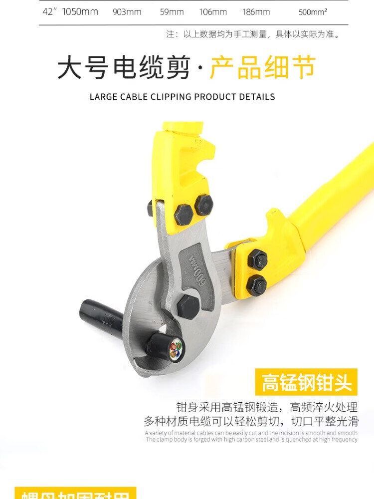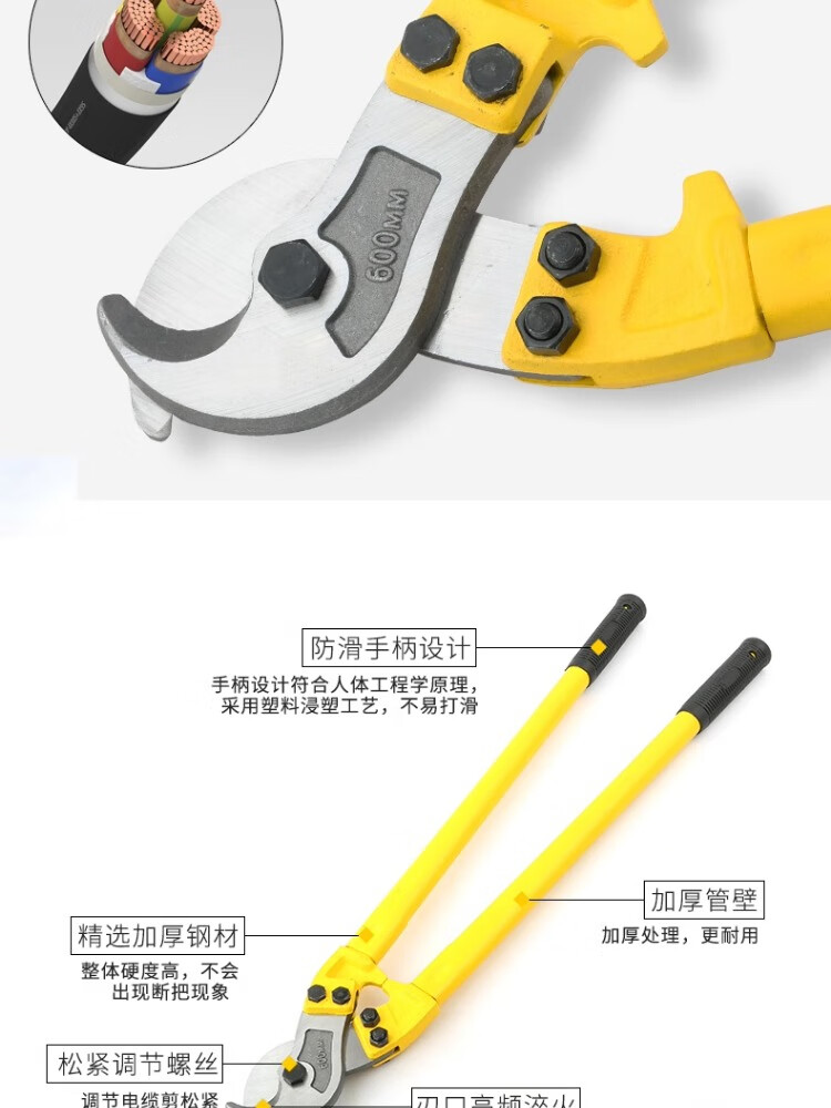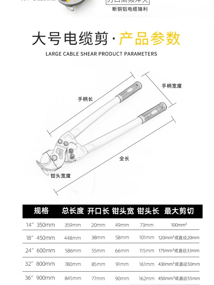 Cable cutter, cable cutter, wire pliers, large electrician's wire cutting tool, cable scissors, manual wire cutter, cable cutter 32/800mm