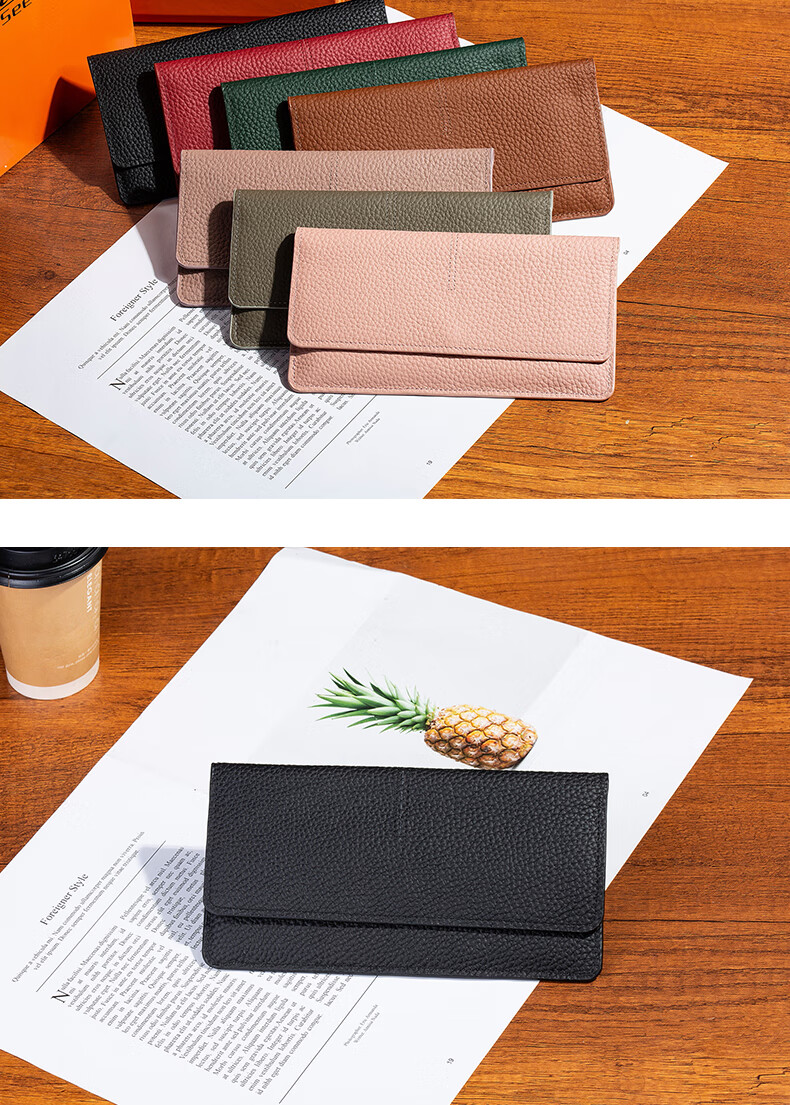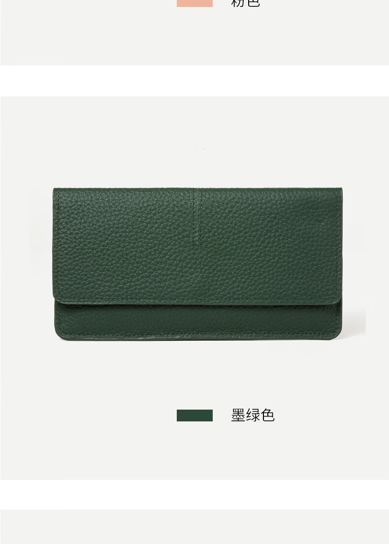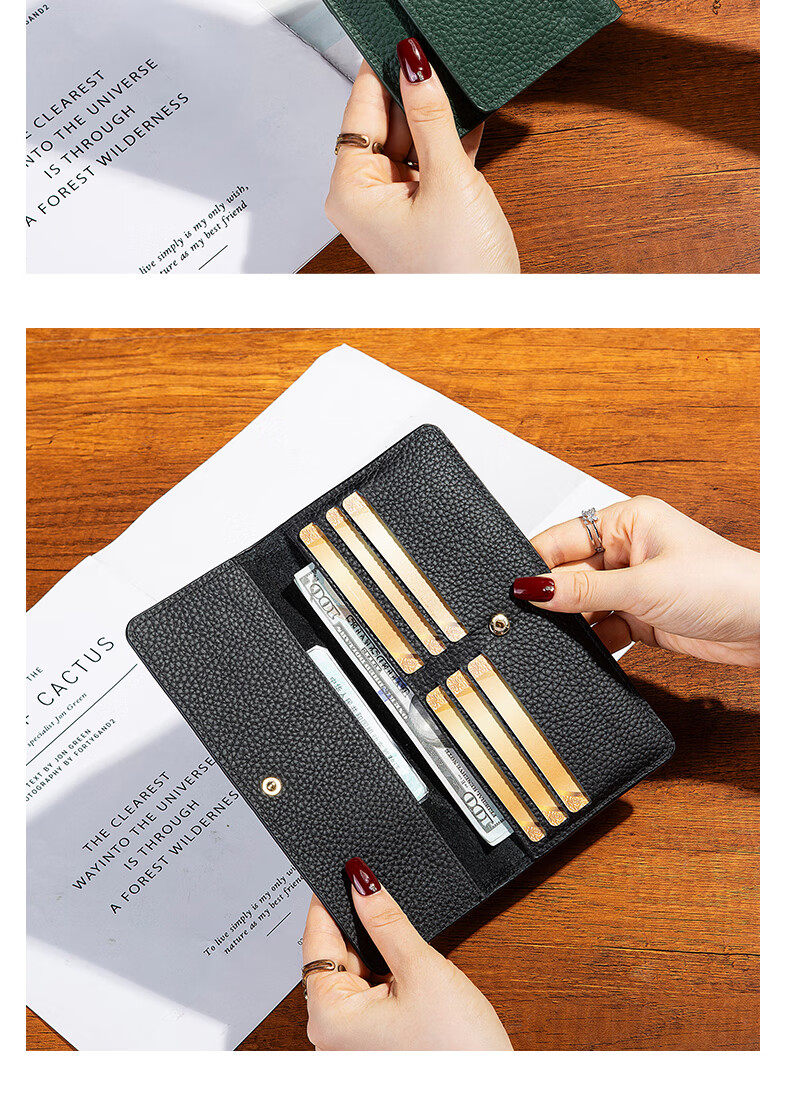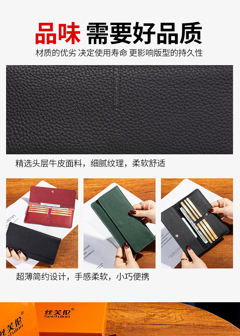 Sephoron New Year Ultra-Thin Long Folding Wallet Unisex 2026 New Genuine Leather Multi-Slot Card Holder Banknote Clip Dark Green-First Layer Cowhide Gift Box Packaging