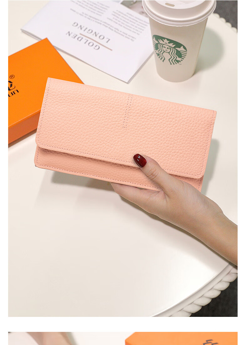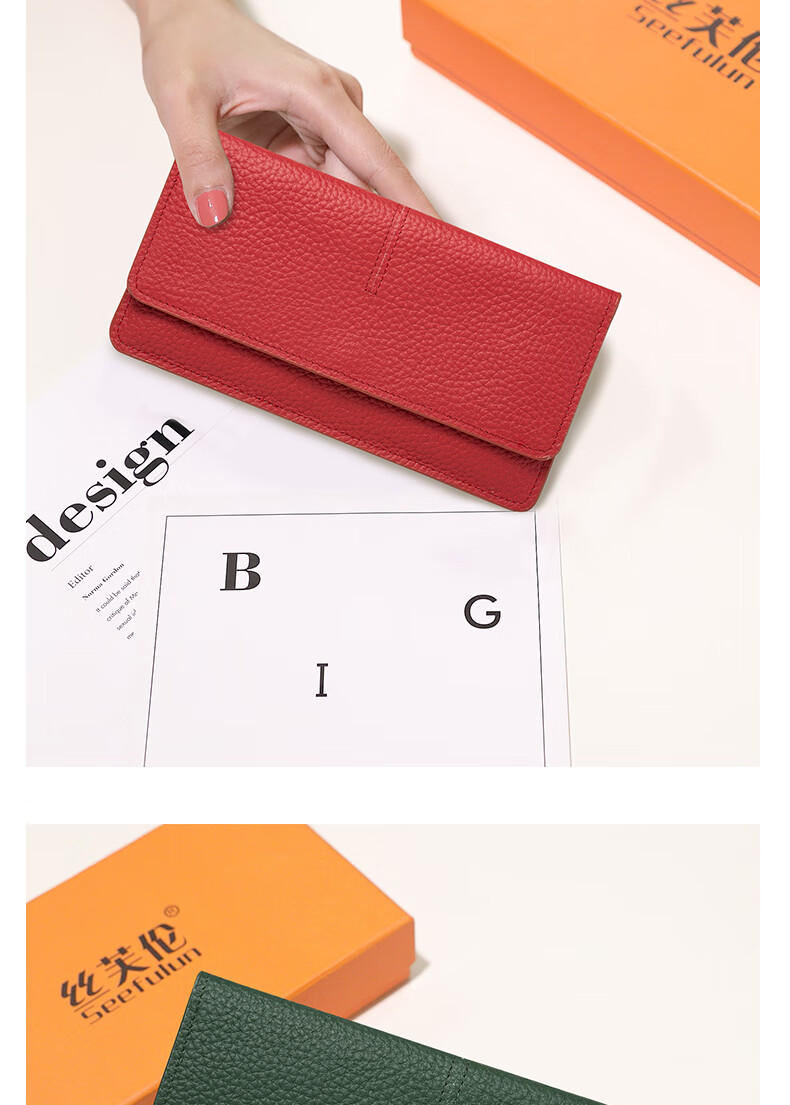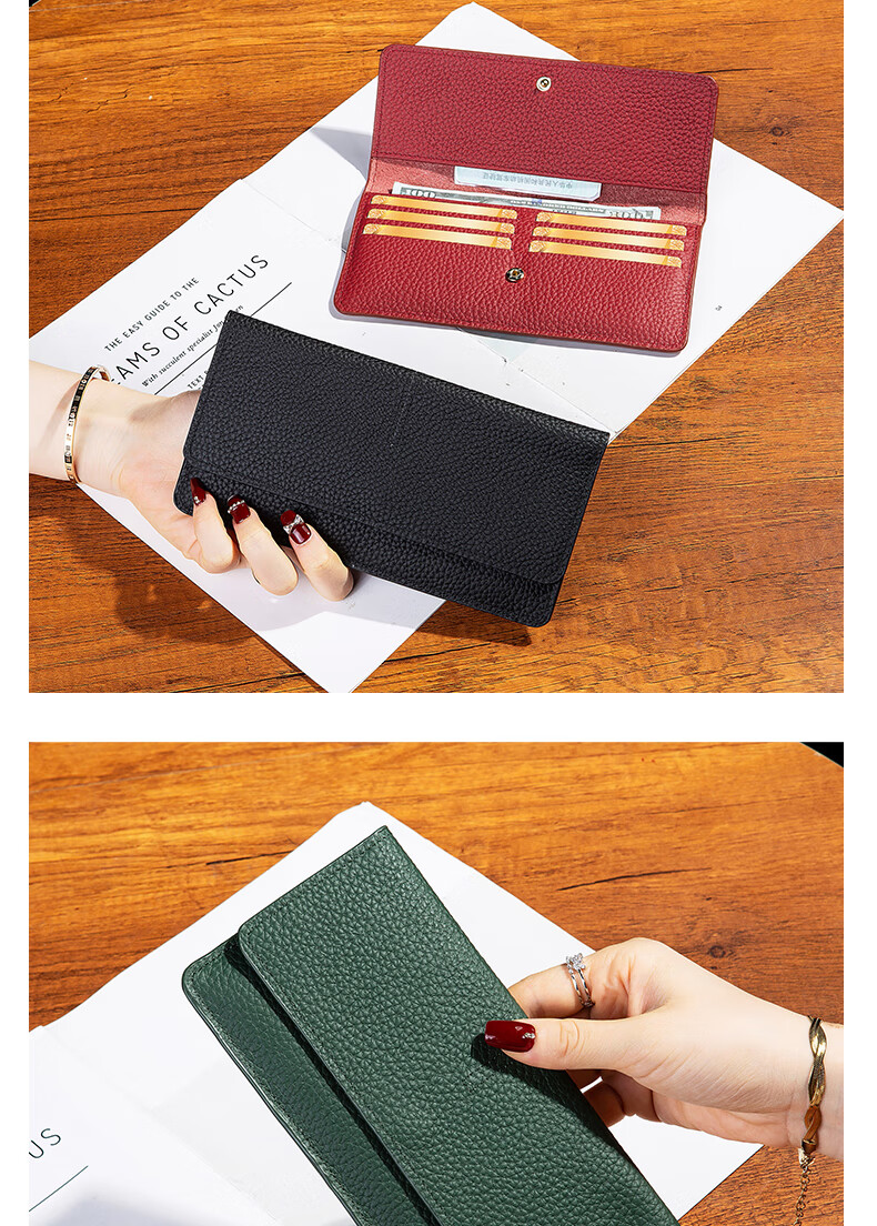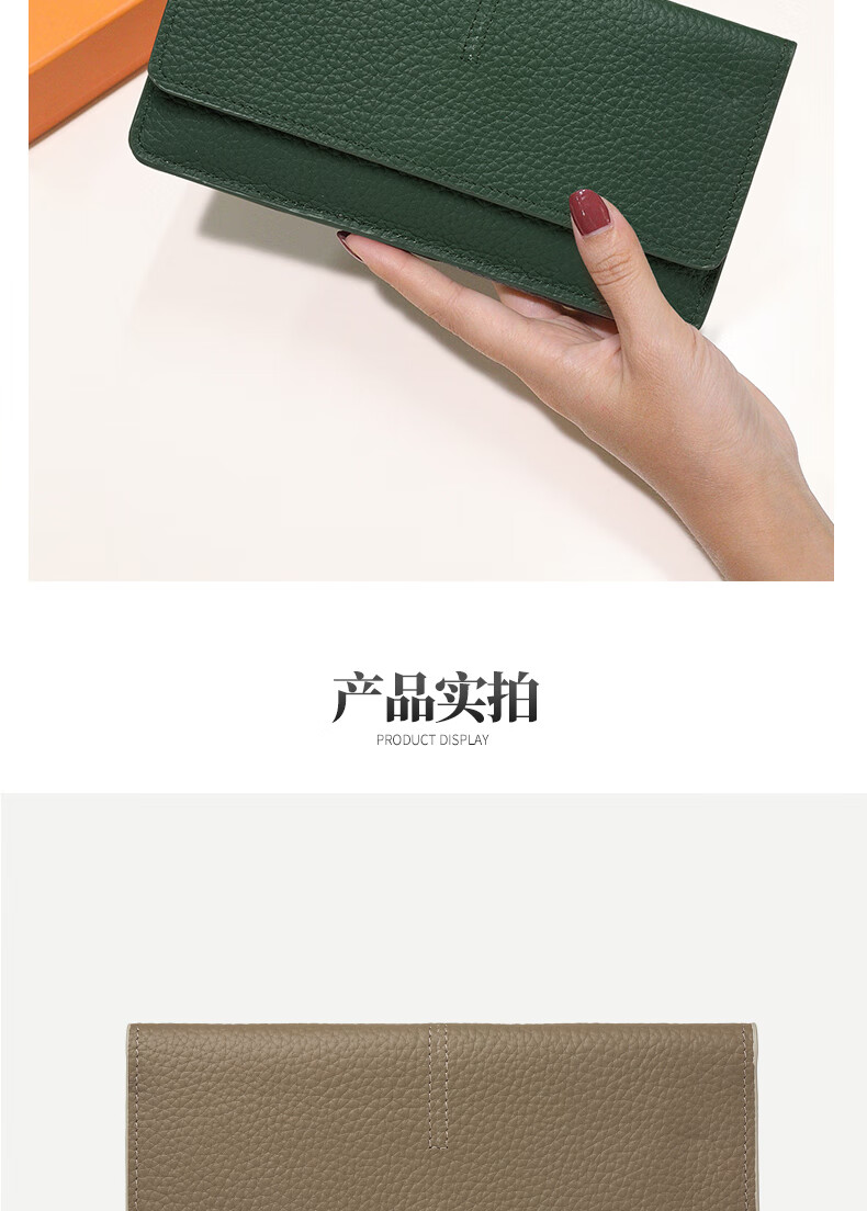 Sephoron New Year Ultra-Thin Long Folding Wallet Unisex 2026 New Genuine Leather Multi-Slot Card Holder Banknote Clip Dark Green-First Layer Cowhide Gift Box Packaging
