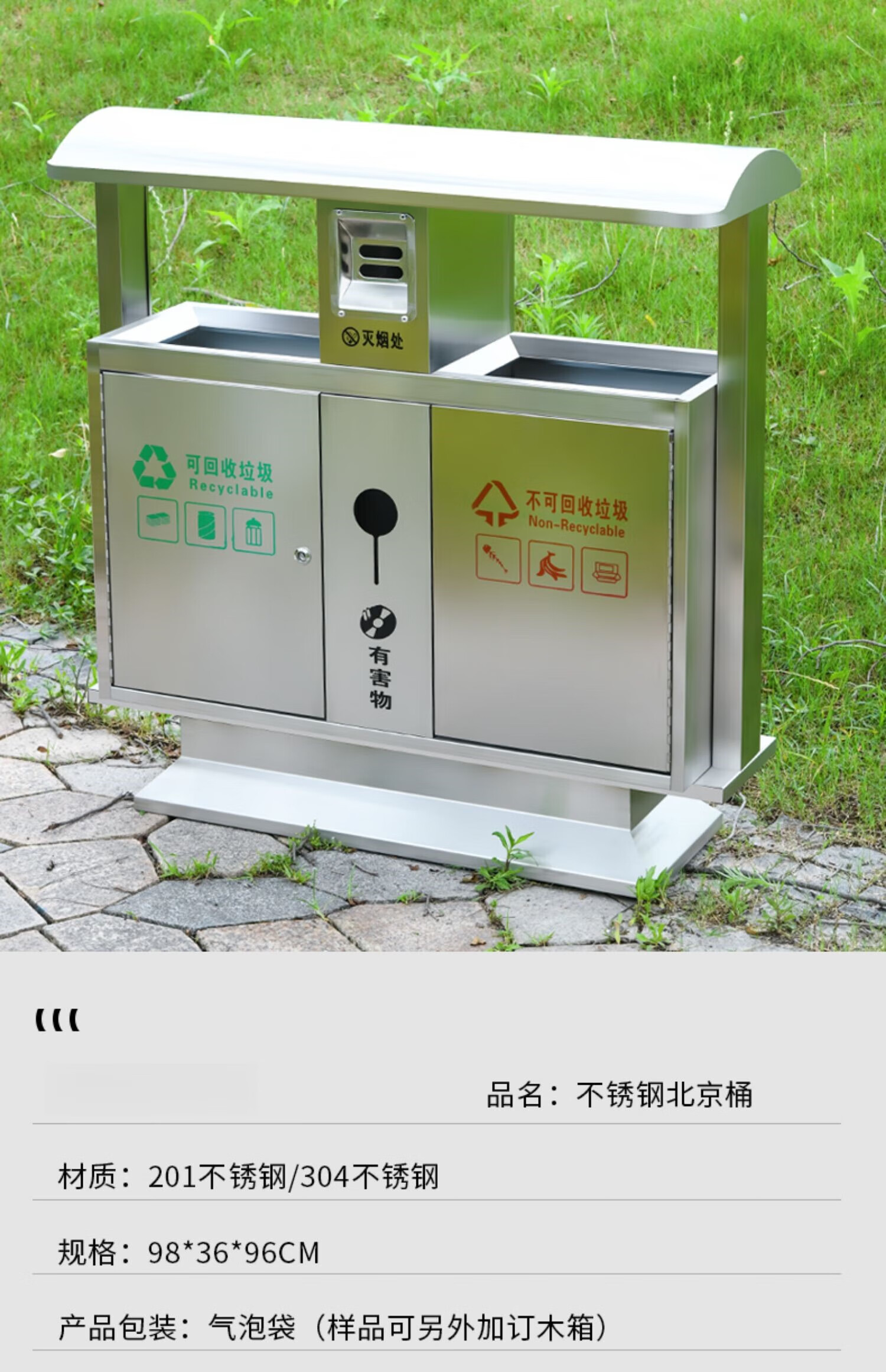 Outdoor trash can, large sanitation peel box, outdoor residential area, scenic spot park, stainless steel classified trash bin, customized Beijing bucket, discounts available in bulk