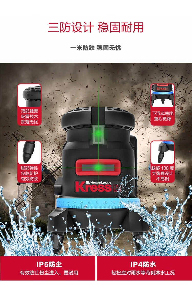 KRESS green light level meter two-line five-line laser line projector self-balancing line marking instrument Green light high-precision 2-line 5200 millimeter Green light high-precision 2-line 5200 milliamp hour