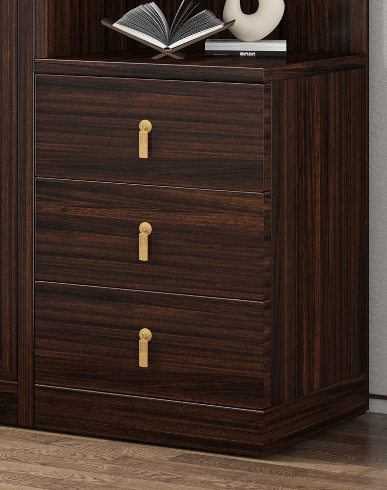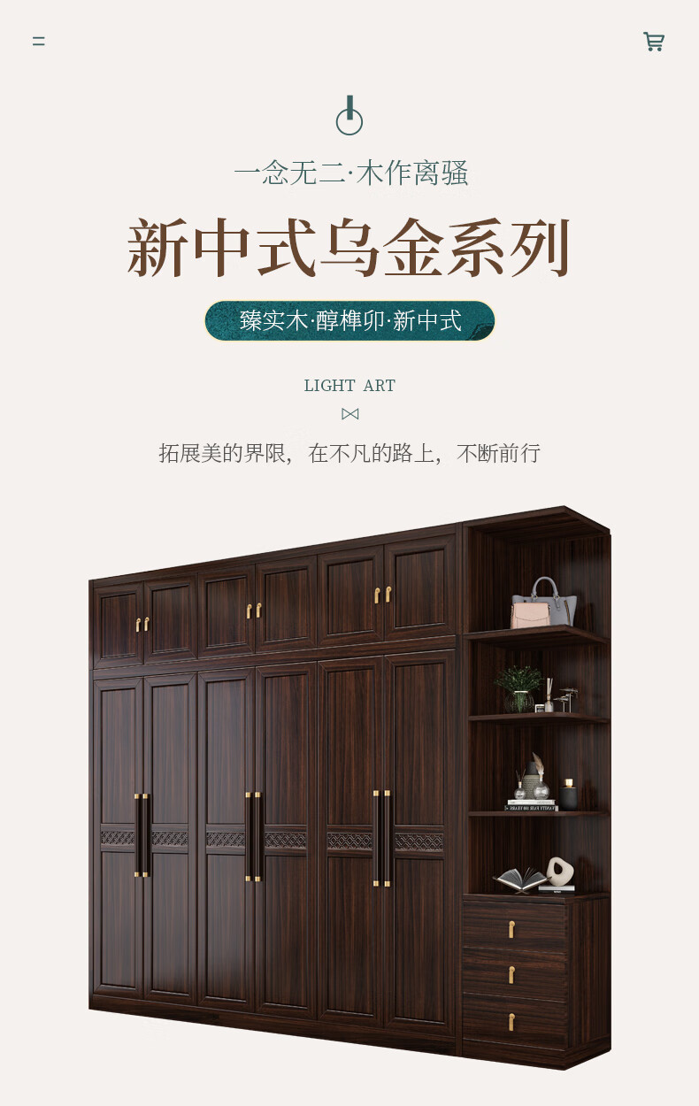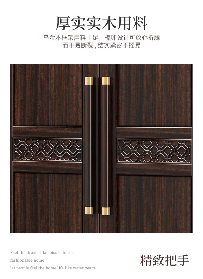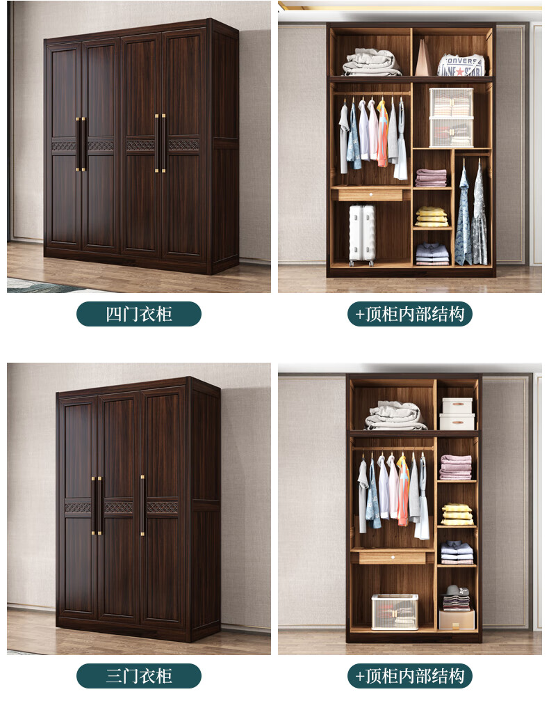 Fanyi Wardrobe New Chinese Style Black Gold Wood Wardrobe Bedroom Cabinet Solid Wood Wardrobe Storage Cabinet Wardrobe Combination Furniture Six Door Wardrobe (With Center Drawer) + Top Cabinet + Side Cabinet Black Gold Wood