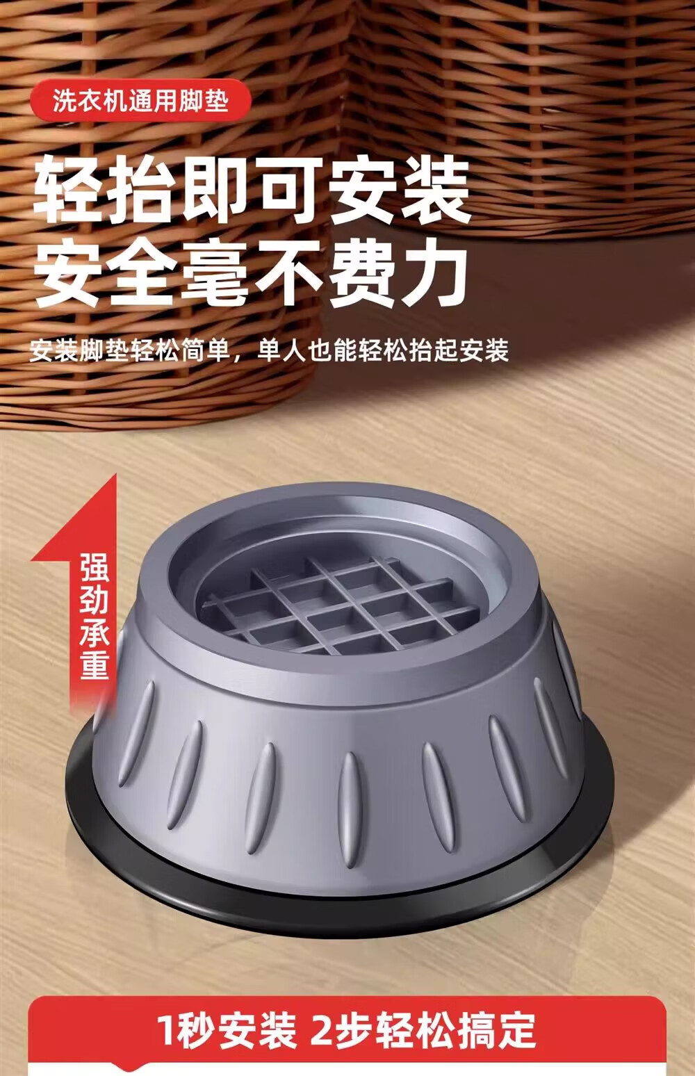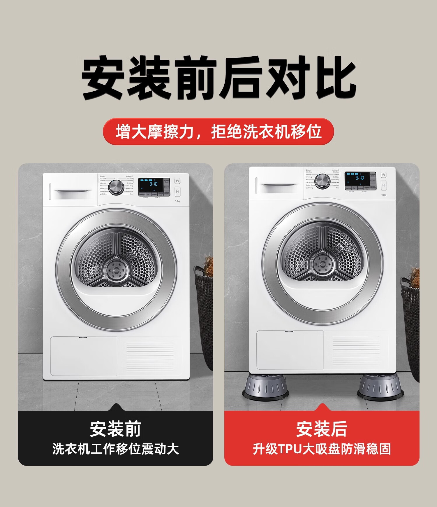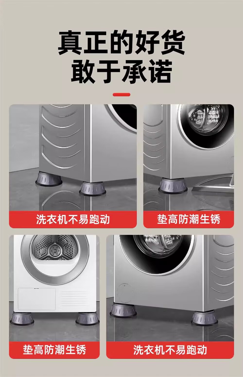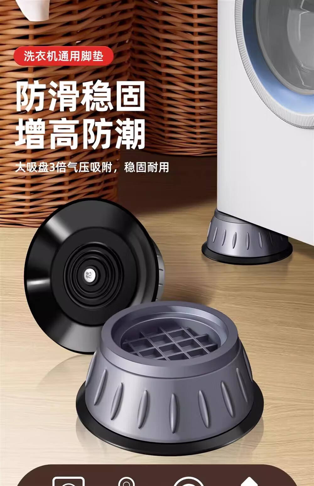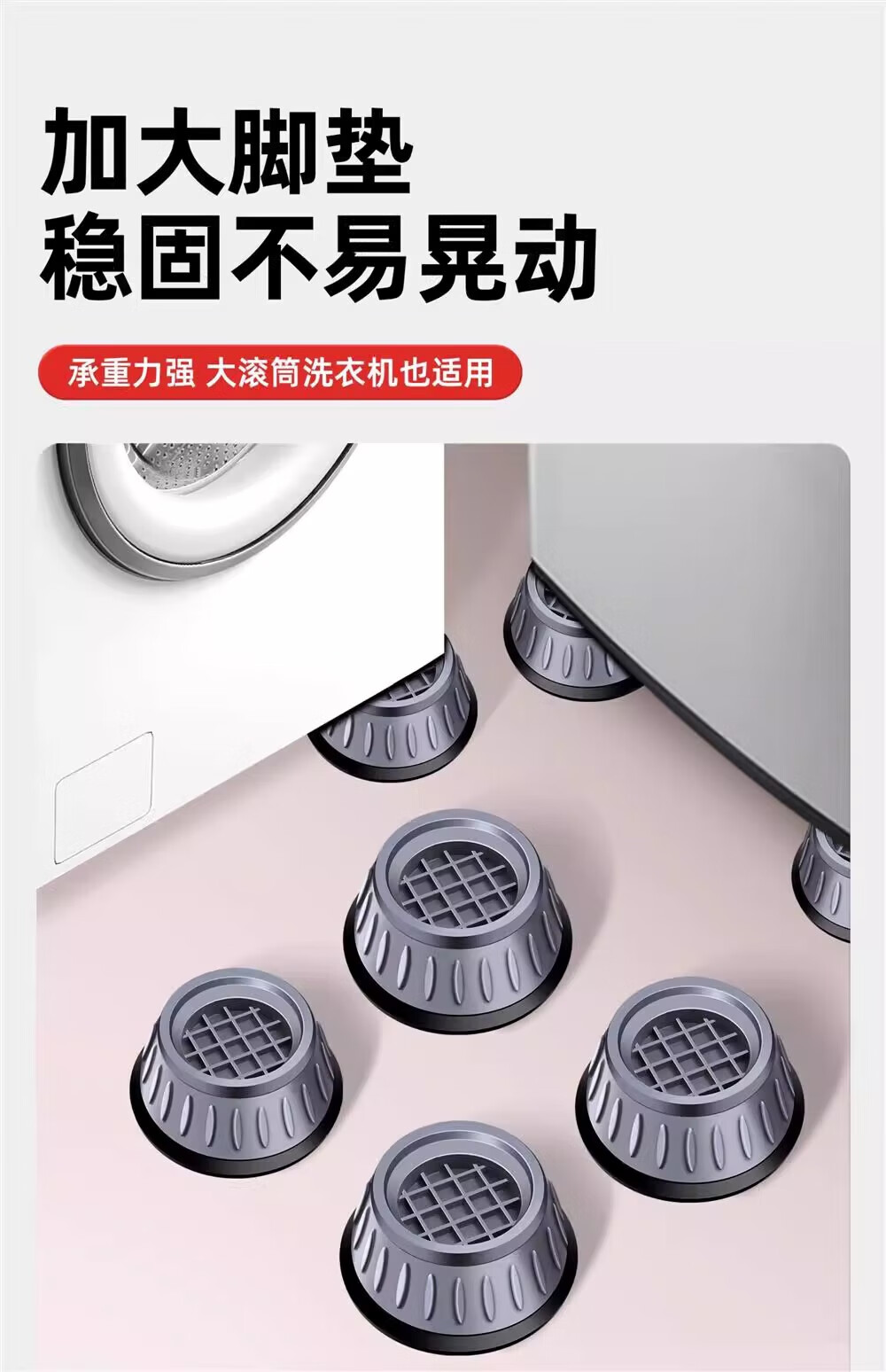 JCZS German washing machine base frame universal foot pad fixed anti-slip anti-shock fully automatic drum foot pad heightening bracket unstable guarantee return universal 4-pack 8cm large suction cup anti-slip