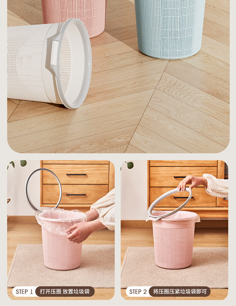 Trash can household living room bedroom kitchen toilet bathroom large capacity office plastic hollow paper basket without lid press ring hollow paper basket turquoise green