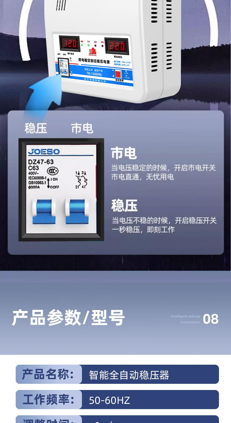 Jiabao Zhengniu whole house voltage regulator 220v household high-power air conditioning special voltage regulator fully automatic fully automatic 220v home 7800W-plug and play no installation required