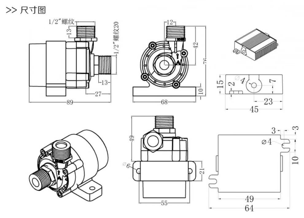 Yu Mengzhe 24V small high temperature resistant water cooling circulation landscape fountain pressurized DC brushless submersible pump adjustable speed DC45C-2480S pump