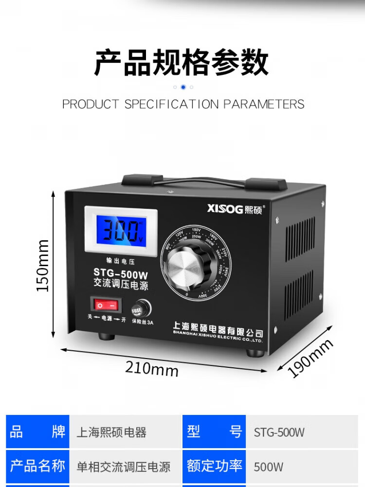 Xishuo voltage regulator 220v single-phase adjustable autotransformer small voltage regulation isolated AC voltage regulator power supply STG-200W 0-300V