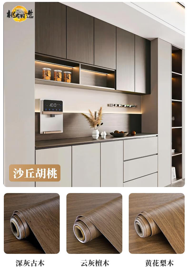 German quality sideboard furniture film solid wood dining table black walnut wood grain sticker self-adhesive imitation wood cabinet table five times extra thick - natural walnut easy to stick without wrinkles 80.cm wide 5 meters long quality real texture