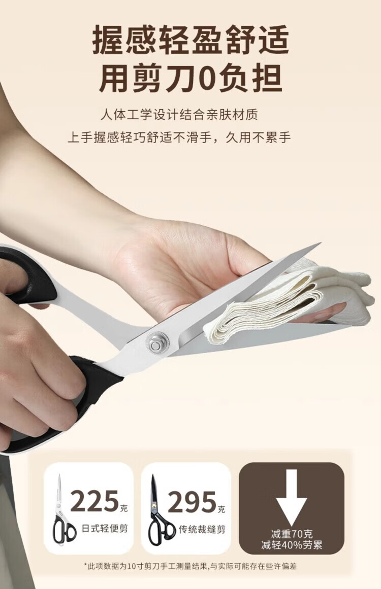 QCSK Japanese brand tailor scissors, special for clothing, Japanese-style lightweight scissors, household sewing industry strong scissors, 10-inch Japanese-style lightweight tailoring scissors, sharp and lightweight