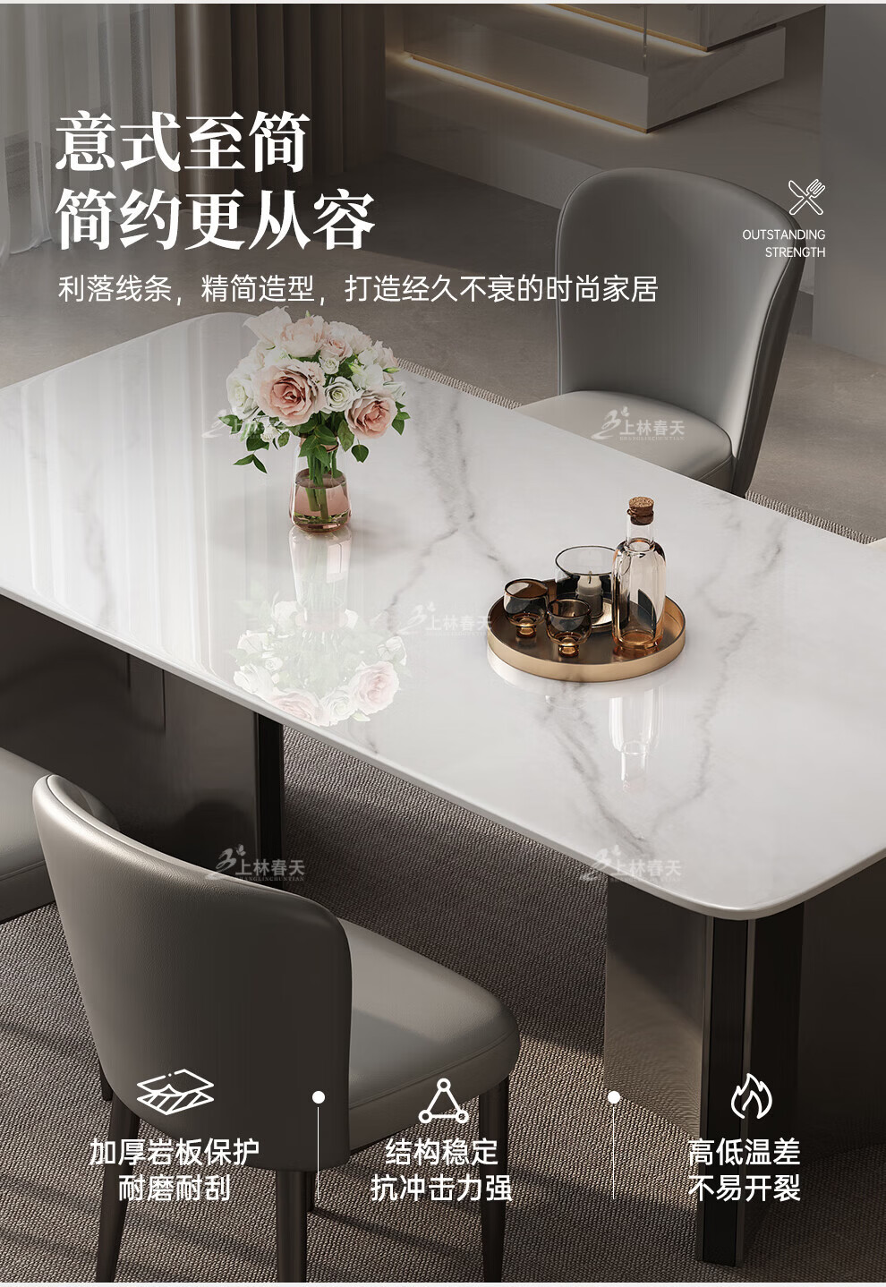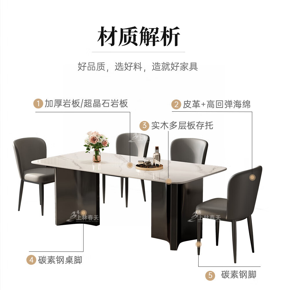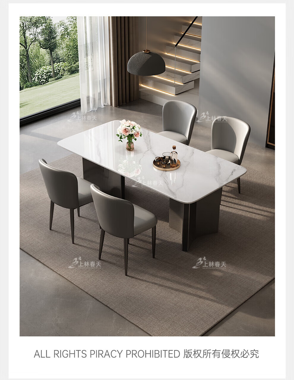 Shanglinchun Italian-style slate dining table and chairs set for home small and medium-sized apartments 4-6 people dining table light luxury high-end super crystal stone antibacterial bright snow mountain white full support base + gray Baylor chairs * 4 pieces 1.4 meters * 0.8 meters * 0.76 meters