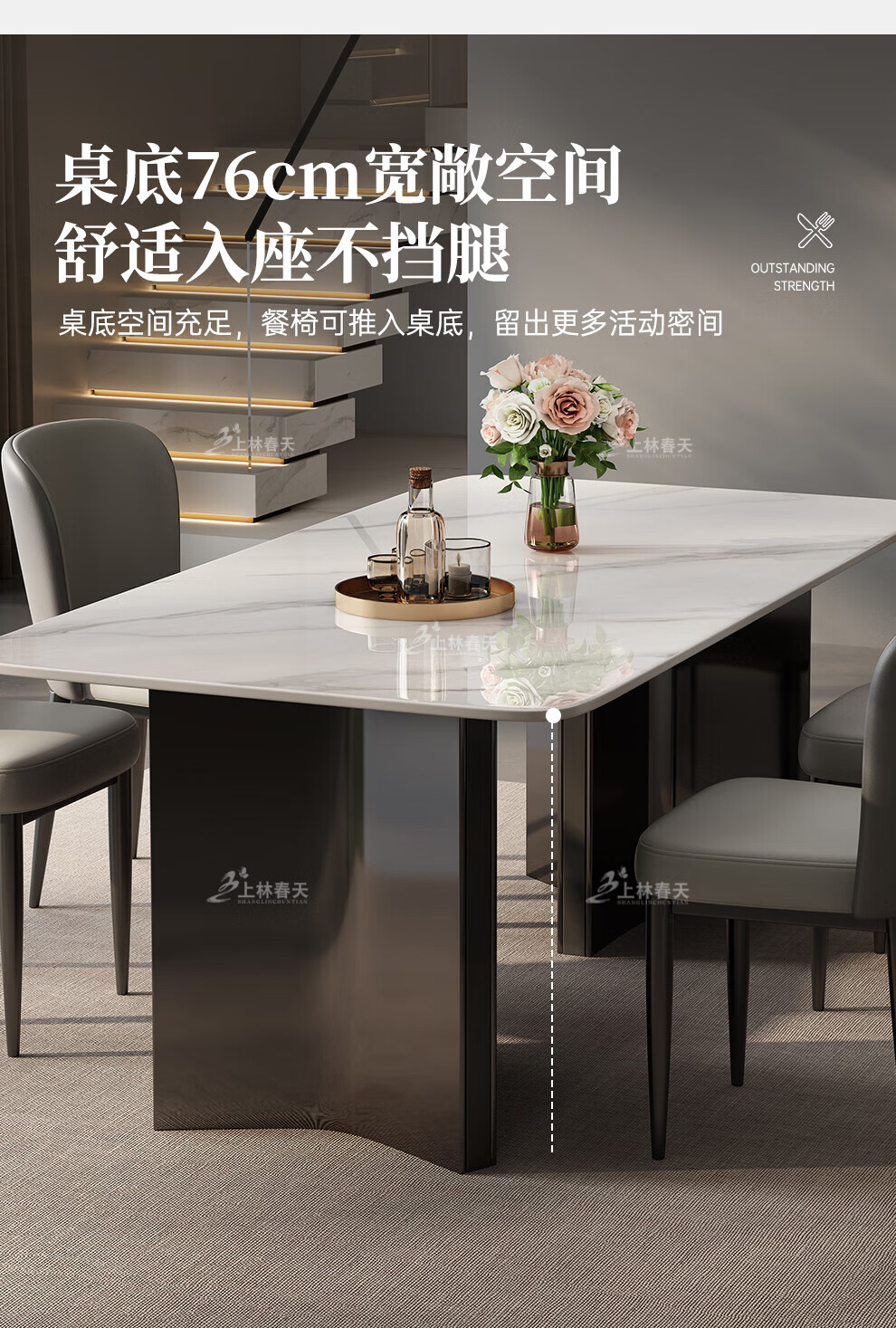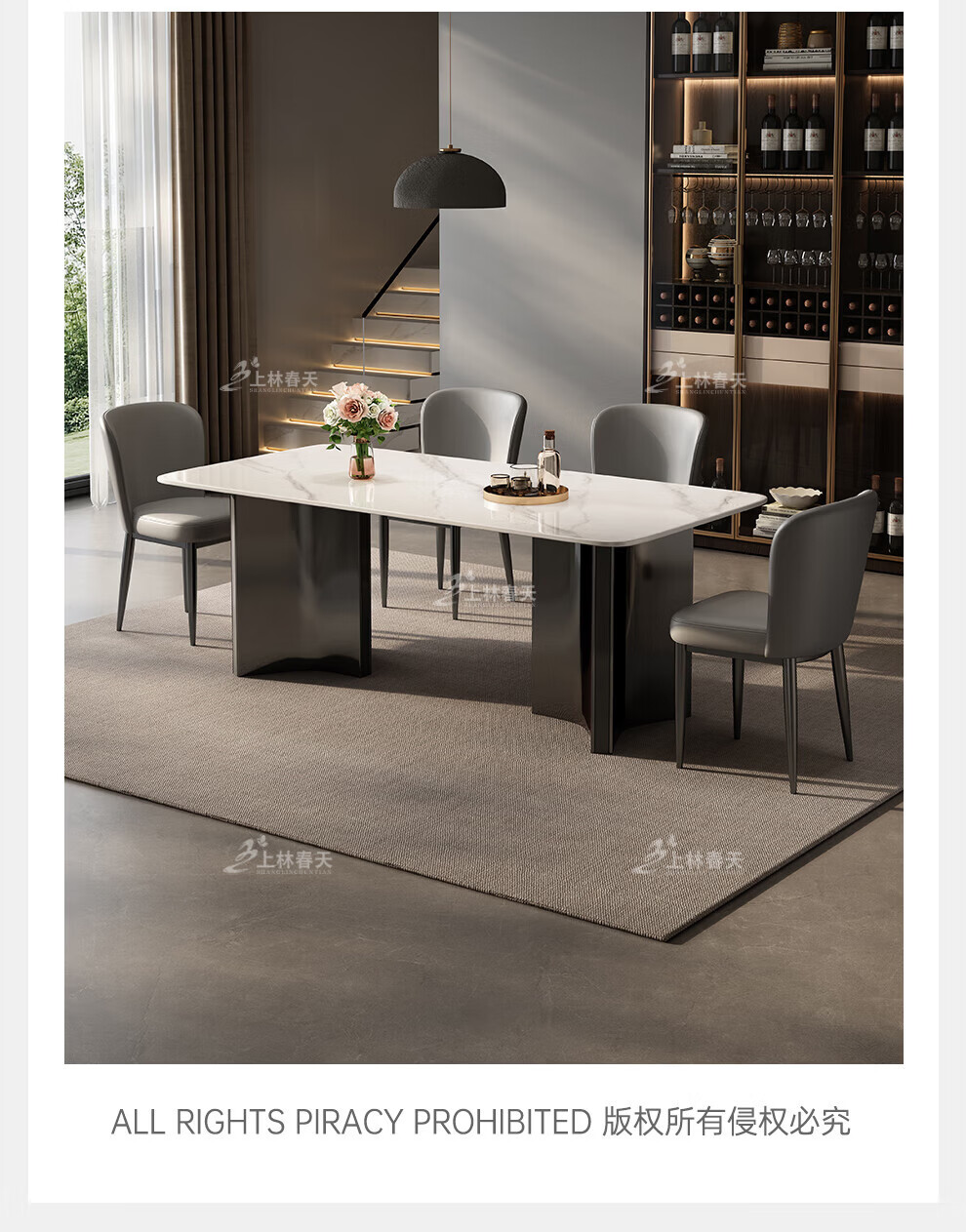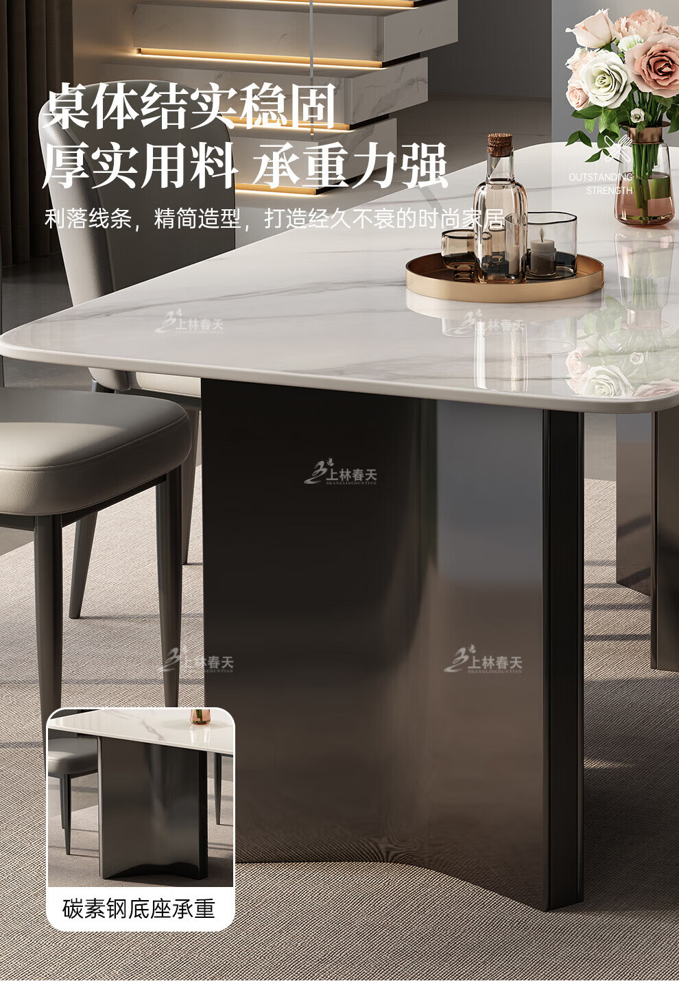 Shanglinchun Italian-style slate dining table and chairs set for home small and medium-sized apartments 4-6 people dining table light luxury high-end super crystal stone antibacterial bright snow mountain white full support base + gray Baylor chairs * 4 pieces 1.4 meters * 0.8 meters * 0.76 meters