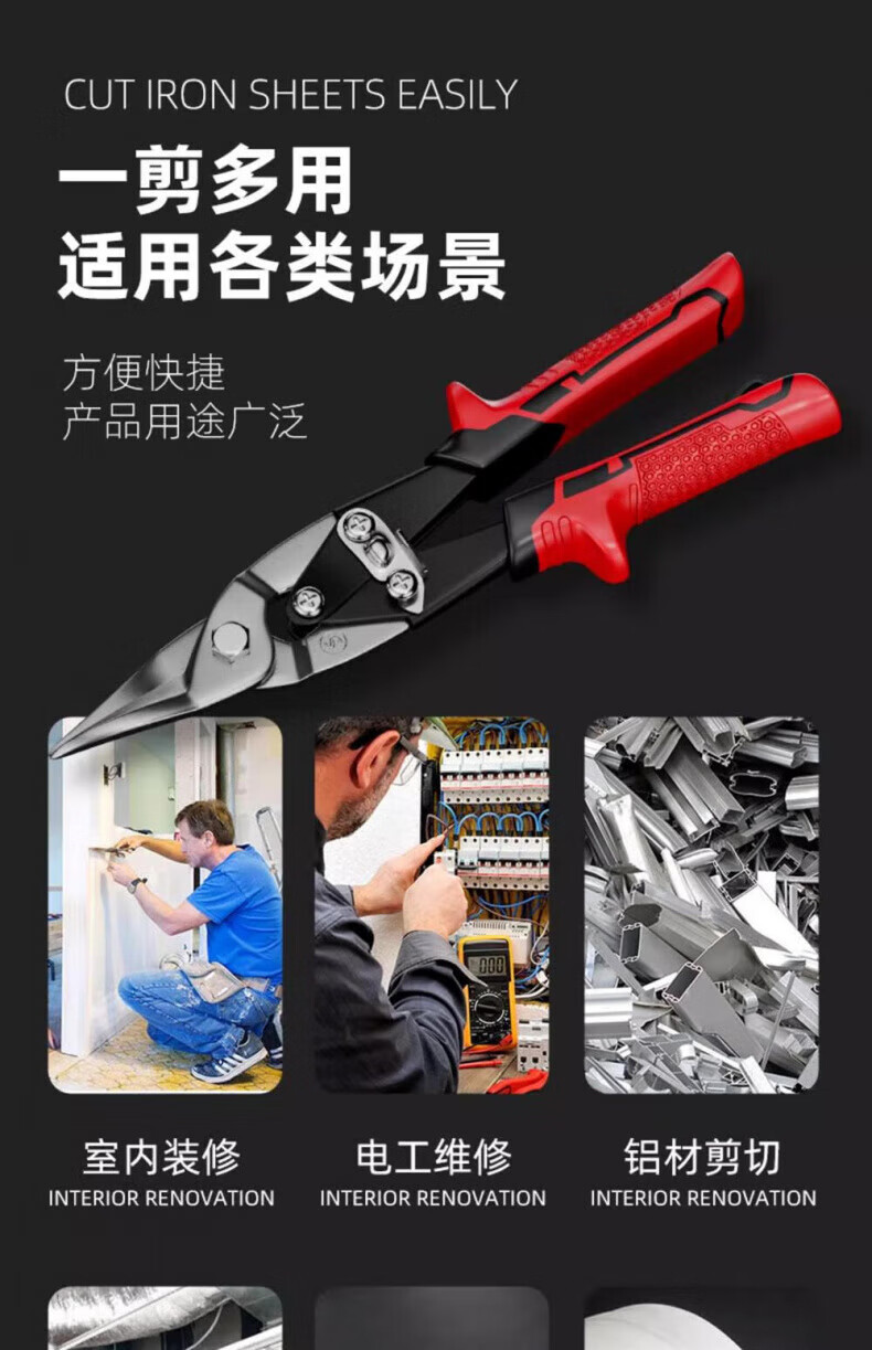 QCSK German iron scissors industrial grade 2.0 thick cutting artifact imported keel scissors multifunctional stainless steel industrial grade 10-inch straight head multifunctional aviation scissors