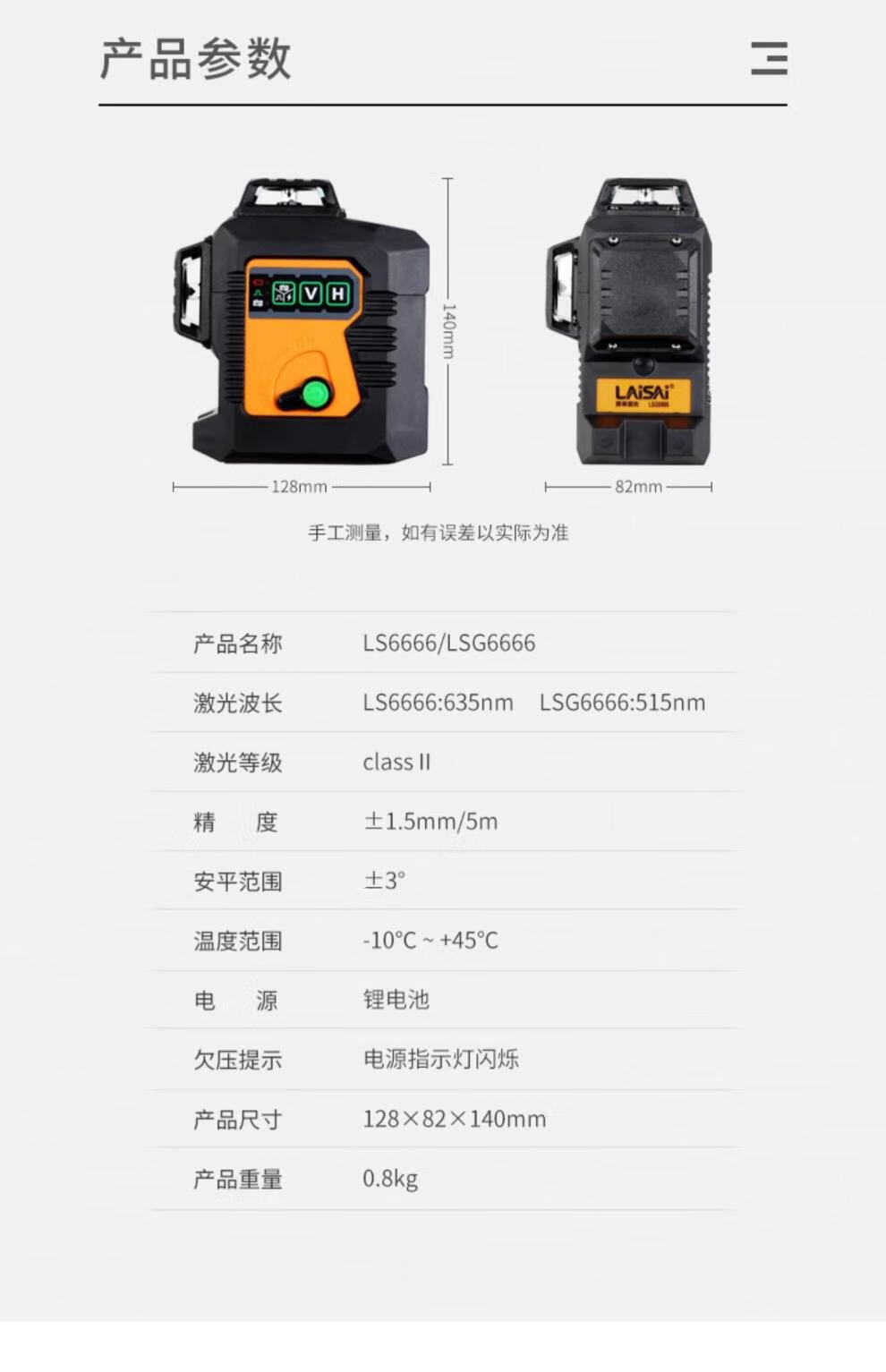 Laser Laser 12-line laser level high-precision strong light thin line 6666 bright green light automatic leveling water meter LSG6666 green light 12-line simplified version