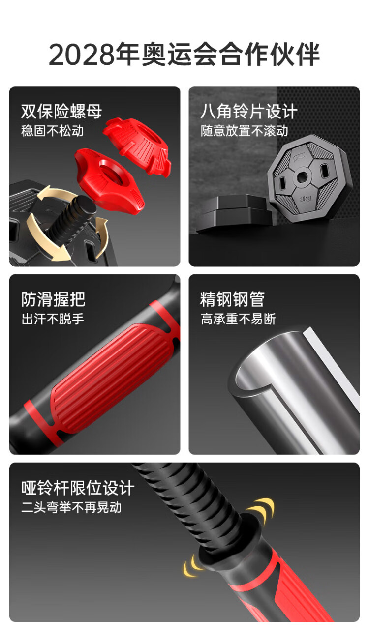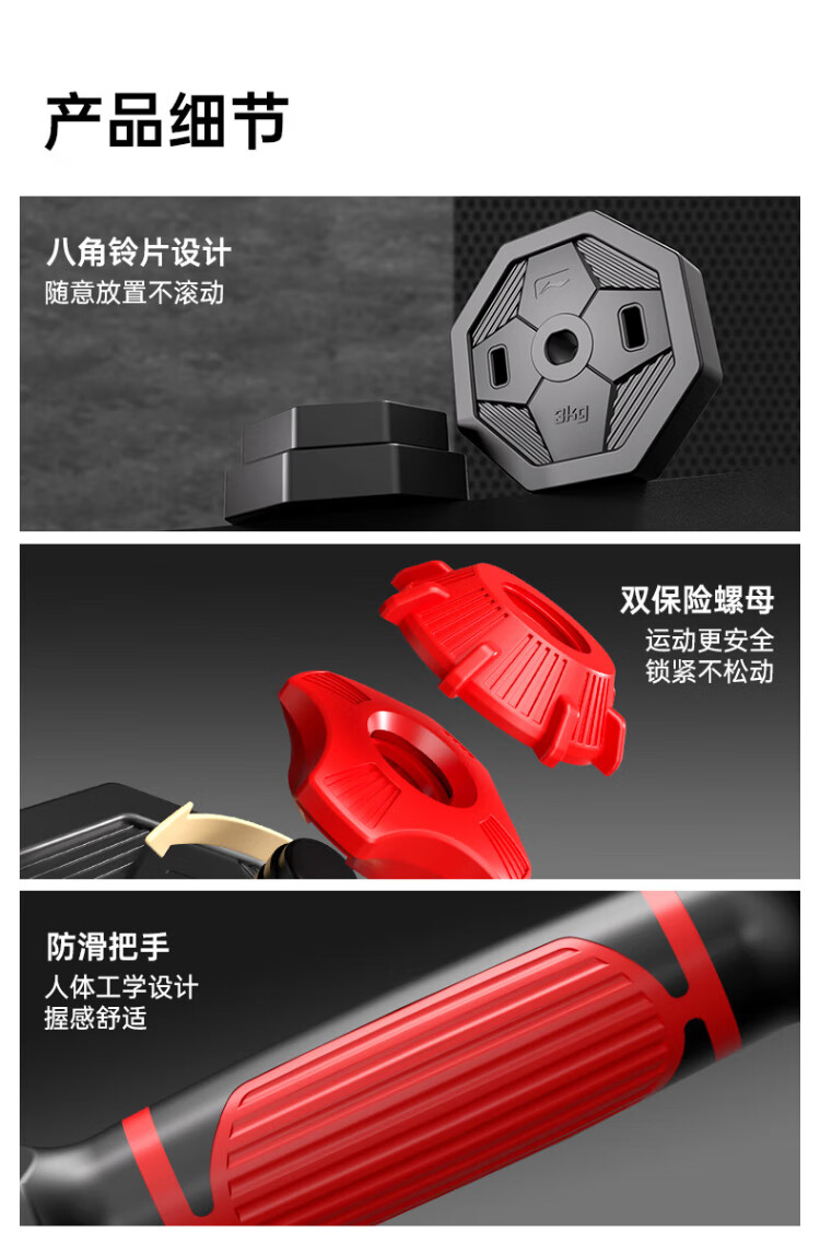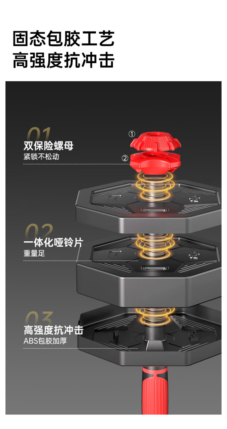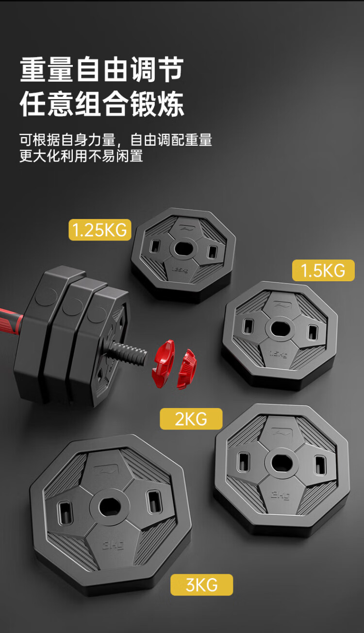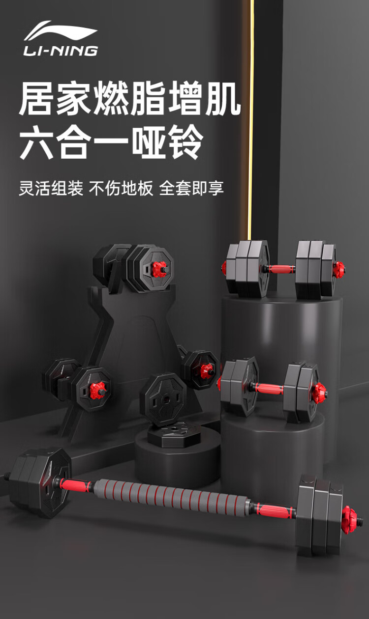 Li Ning Dumbbell Men's Adjustable Home Set Fitness Equipment Combination Barbell Strength Training Quick Release Sports 8-Edge Anti-Roll 40KG Dumbbell + Barbell + Handle
