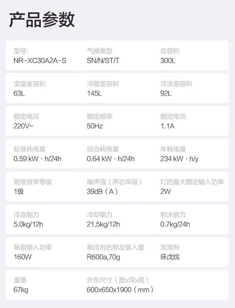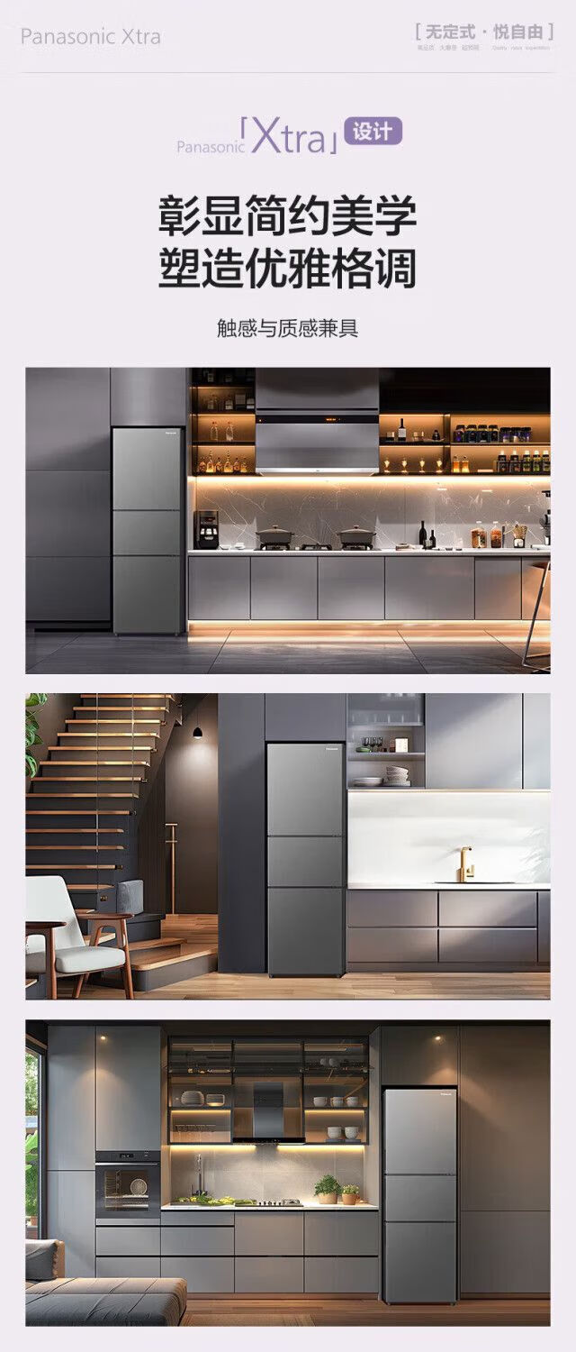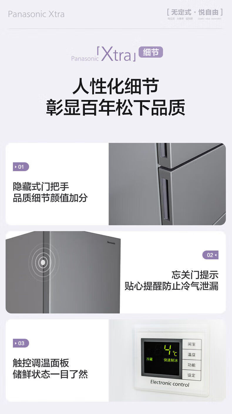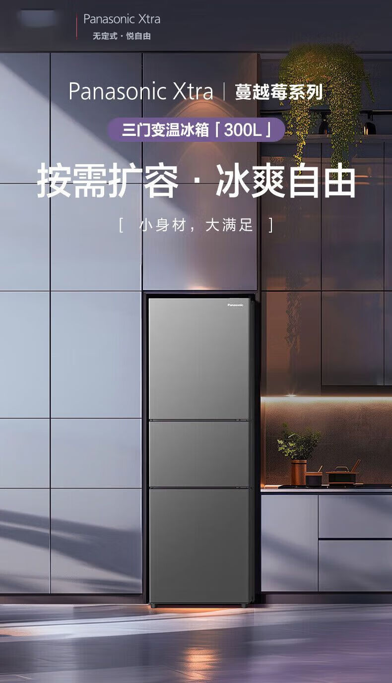Panasonic three-door household refrigerator NREC31AXBWXC30A2AS automatic ice making 303L white EC31AXB-W