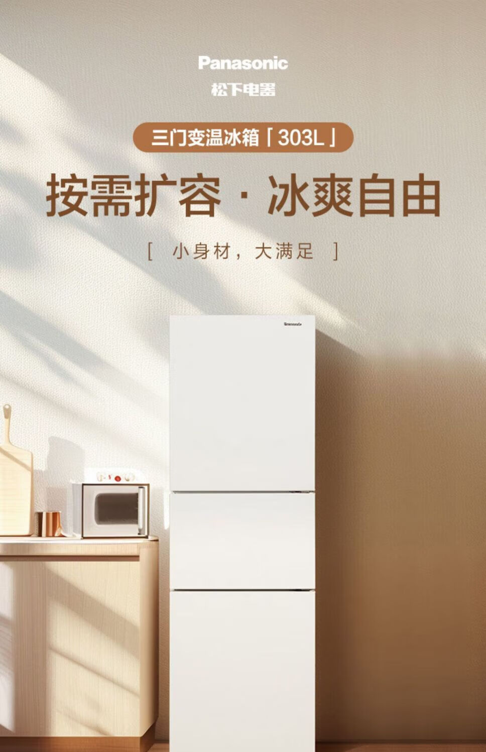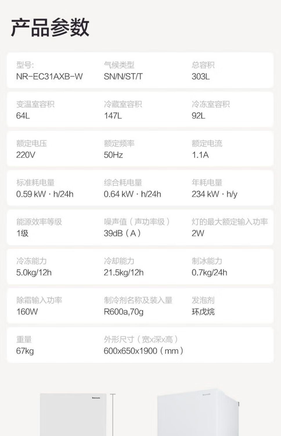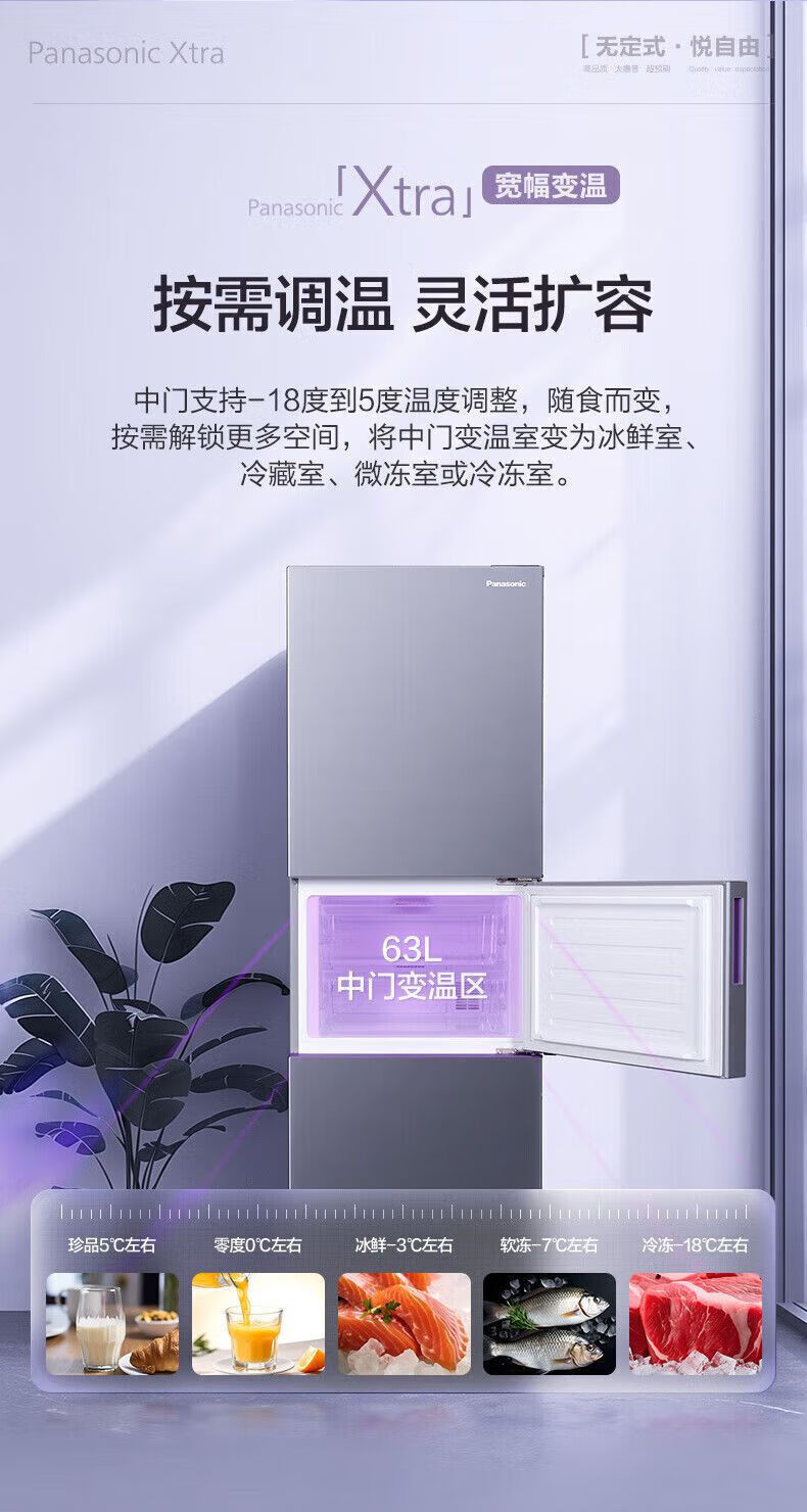 Panasonic three-door household refrigerator NREC31AXBWXC30A2AS automatic ice making 303L white EC31AXB-W