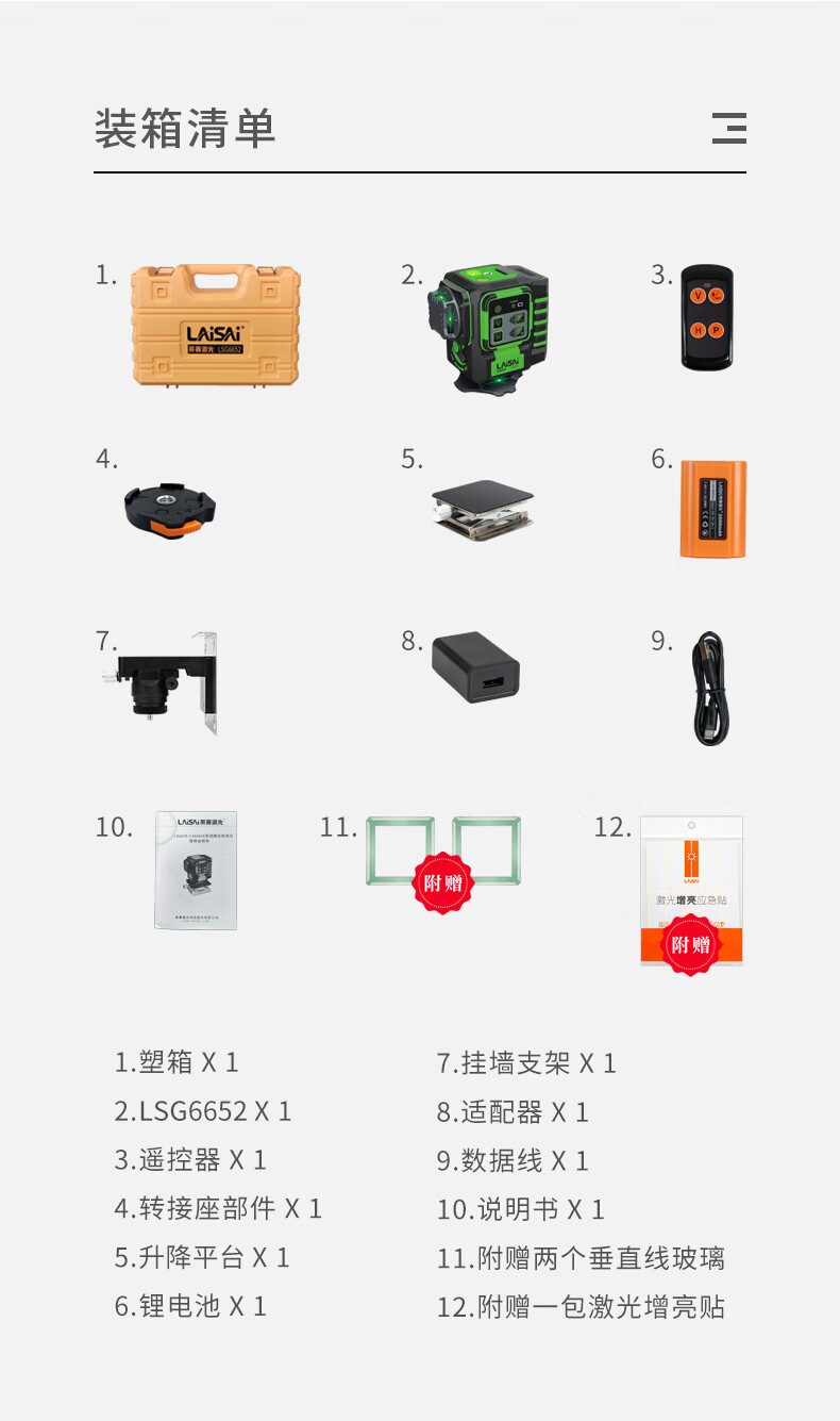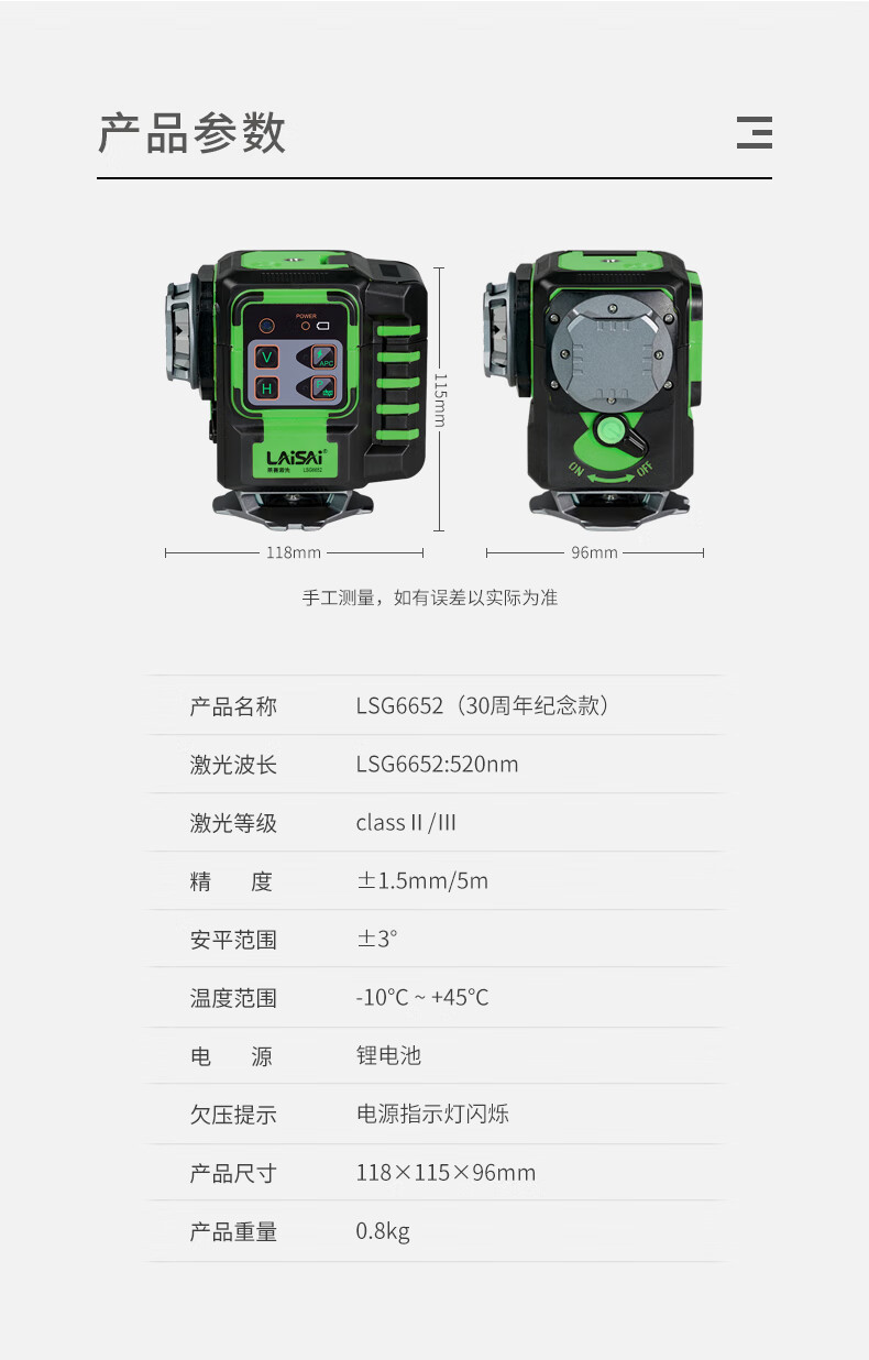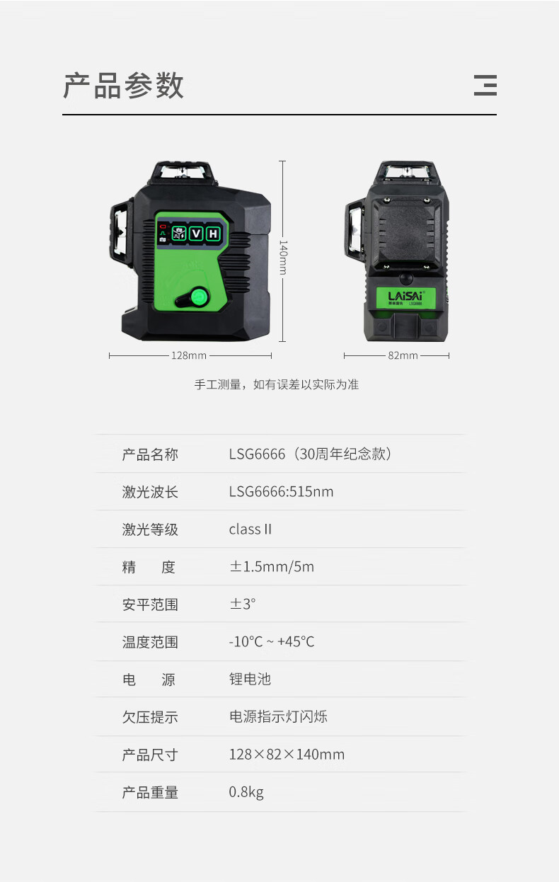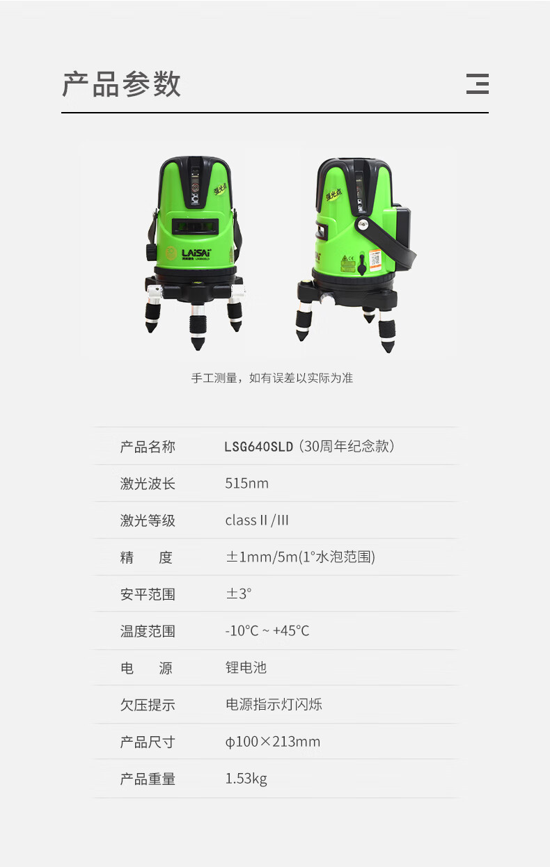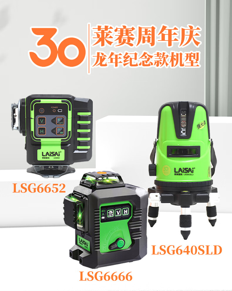 Laser Laser 30th Anniversary Commemorative Edition Laser Level High-precision Strong Light Thin Line Wall-mounted Construction Site Leveling LSG640SLD Green Light 5-Line Commemorative Edition Standard