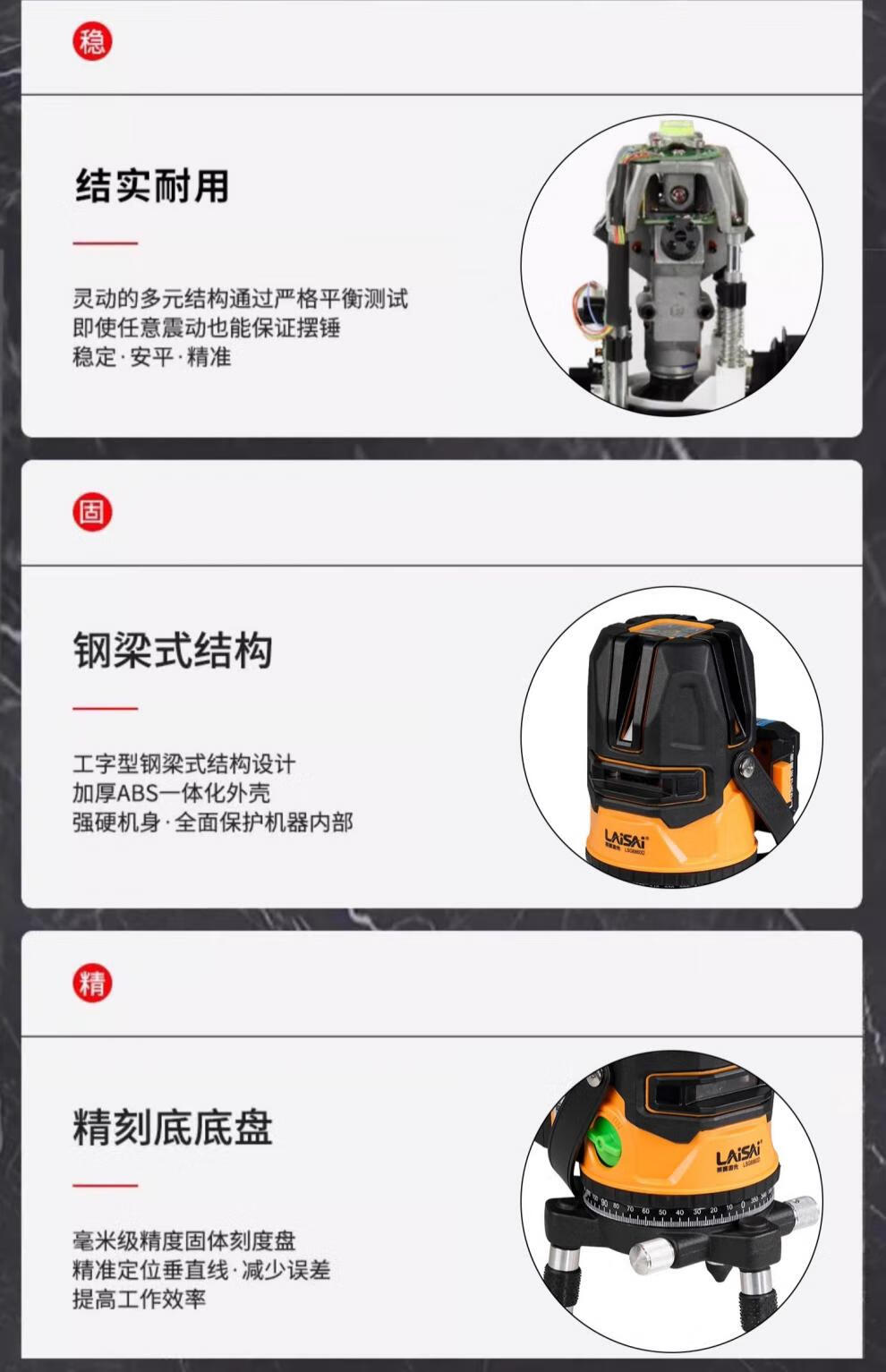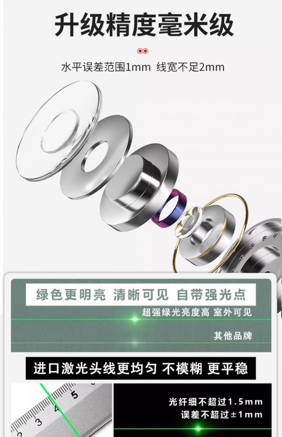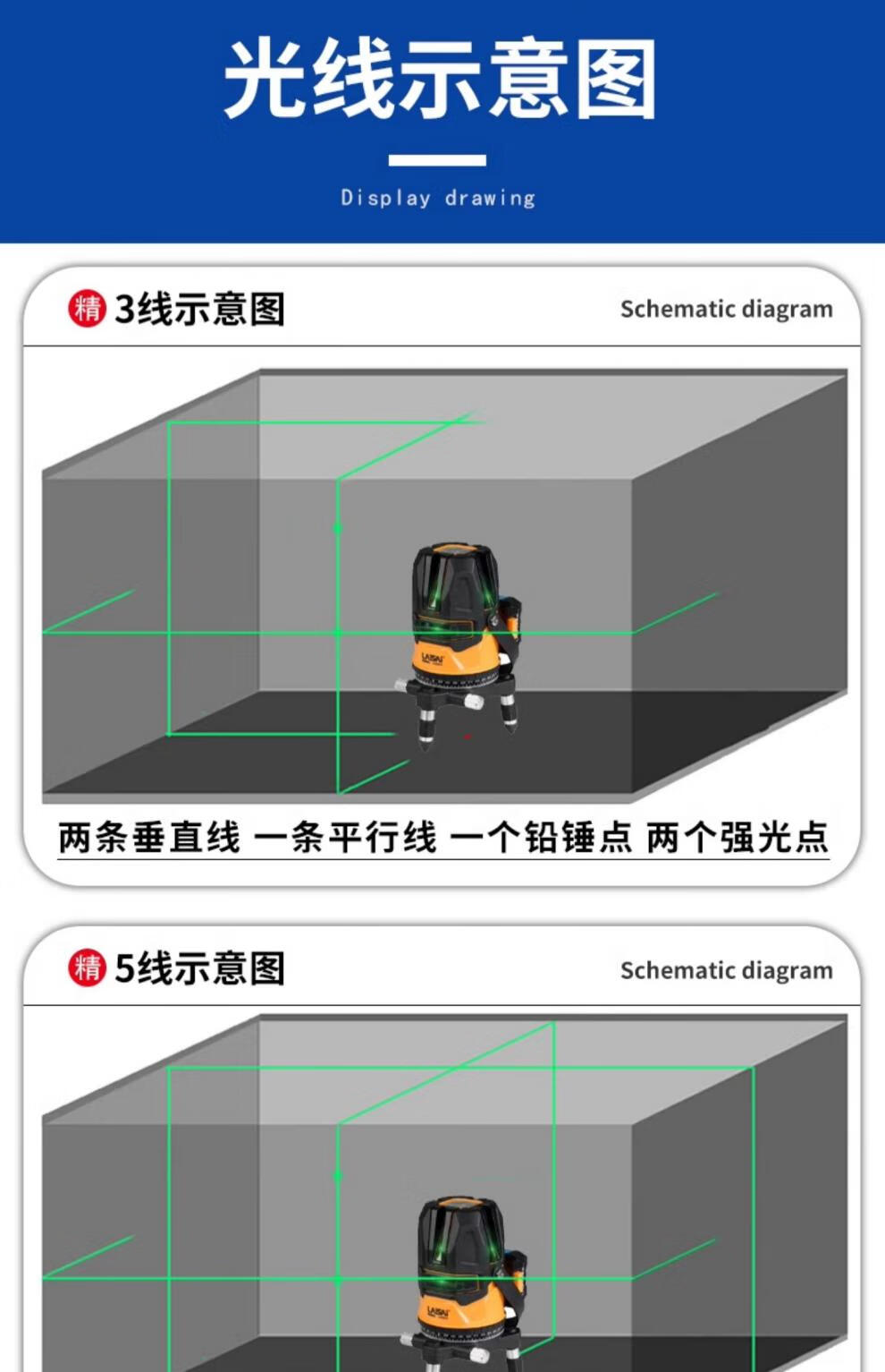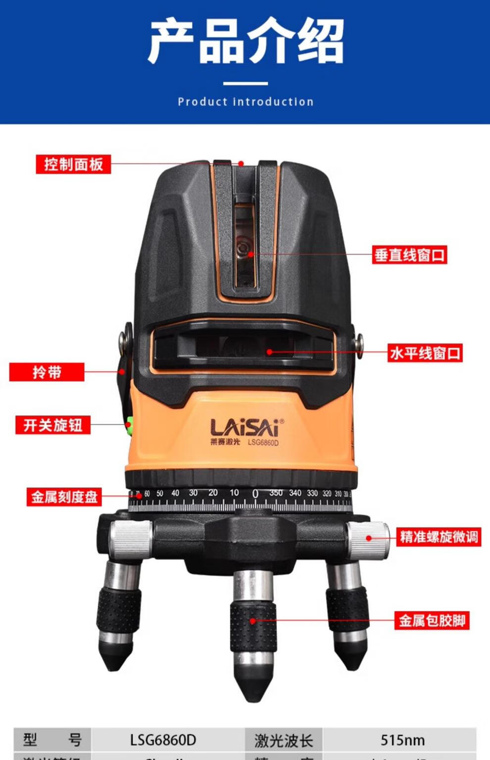 Laser laser level high-precision strong light thin line 3 lines 5 lines anti-fall household flat water outdoor special LSG6860D-3 green light three lines standard