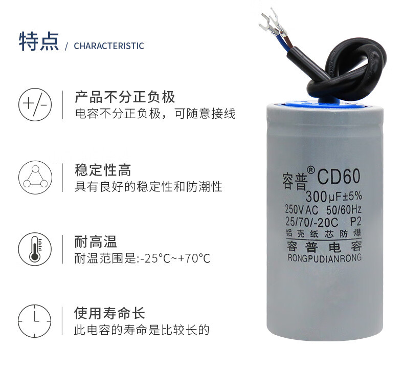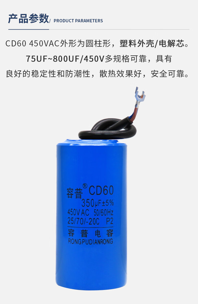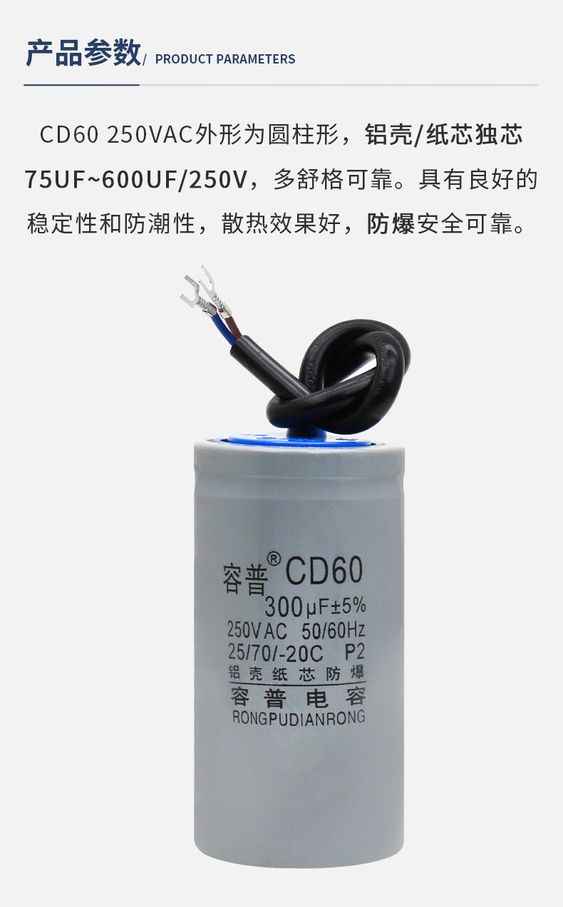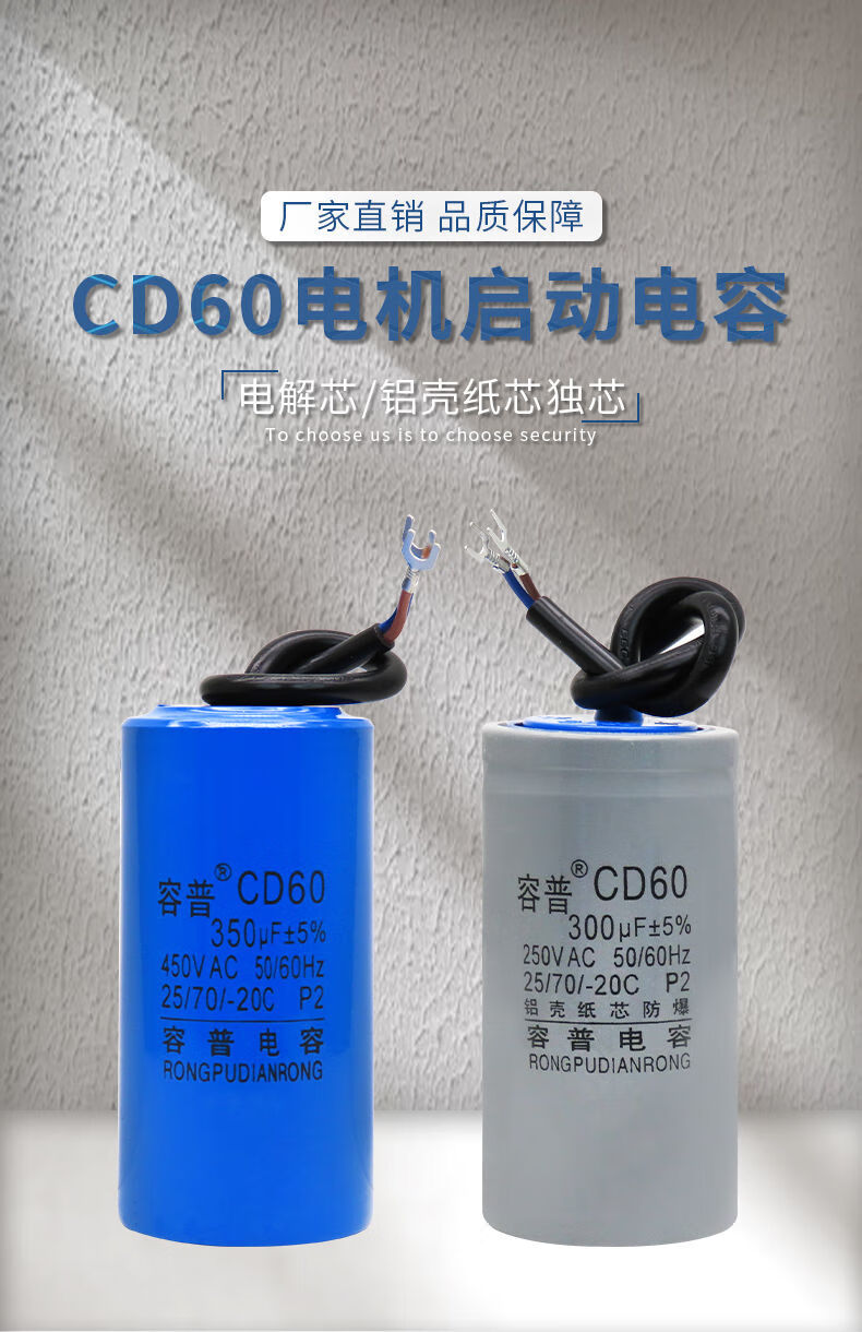CD60 starting capacitor 75/100/250/300/350/500UF 450V motor starting capacitor 250V 200UF 450V electrolytic core (plastic shell)