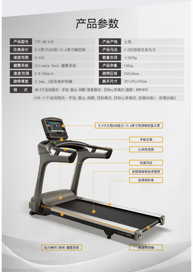 JOHNSON treadmill, high-end household foldable, professional shock-absorbing fitness equipment, T70 commercial enterprise gym, 16-inch full-color touch screen XIR