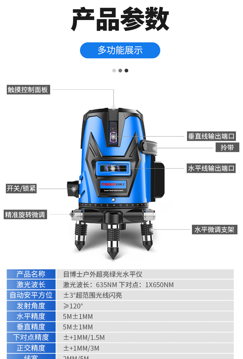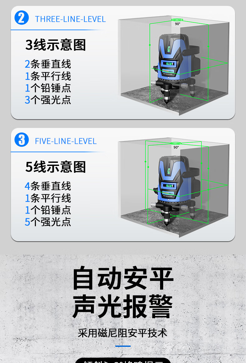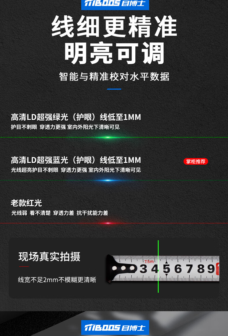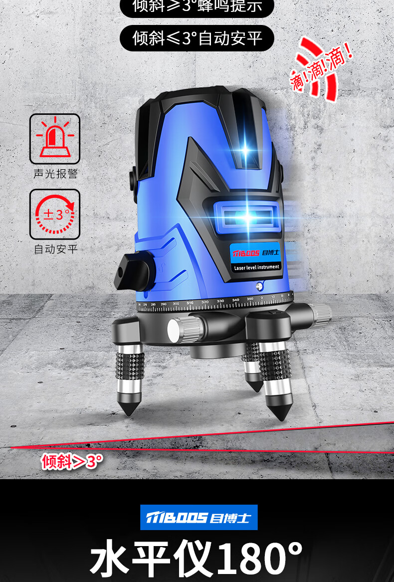 Dr. Eye level instrument level high-precision engineering measurement laser 23 five-line green light automatic leveling meter imported precision green light 2 lines adjustable thickness dual electric + tripod
