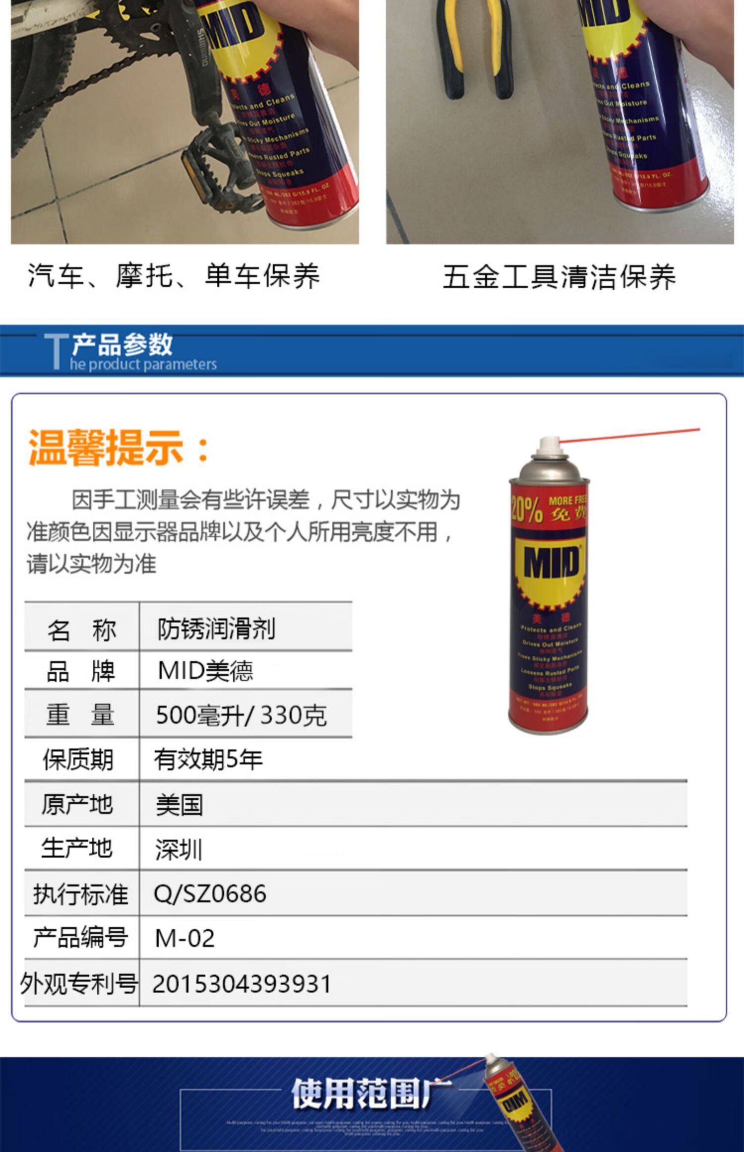 MID universal anti-rust agent lubricant rust remover/anti-rust oil bolt loosening agent 500ML330g 2 pieces (comes with a piece of sandpaper)