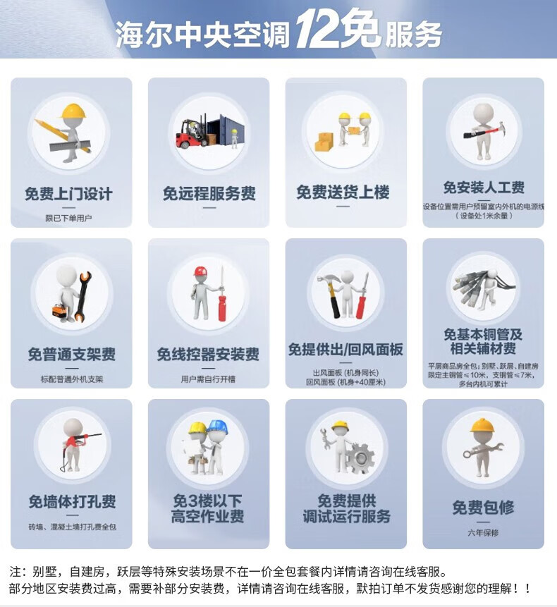 Produced by Haier Smart Home, Haier inverter central air conditioner multi-split 5 HP first class energy efficiency one to four embedded household central air conditioner Yuanqi large 6 HP / first class energy efficiency one to six (double fan)