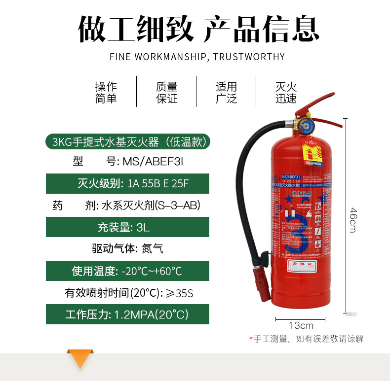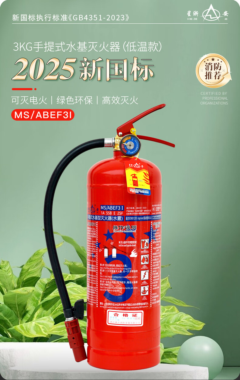 Xingzhe'an 25-year-old new national standard portable low-temperature water-based fire extinguisher 3L MS/ABEF3 I