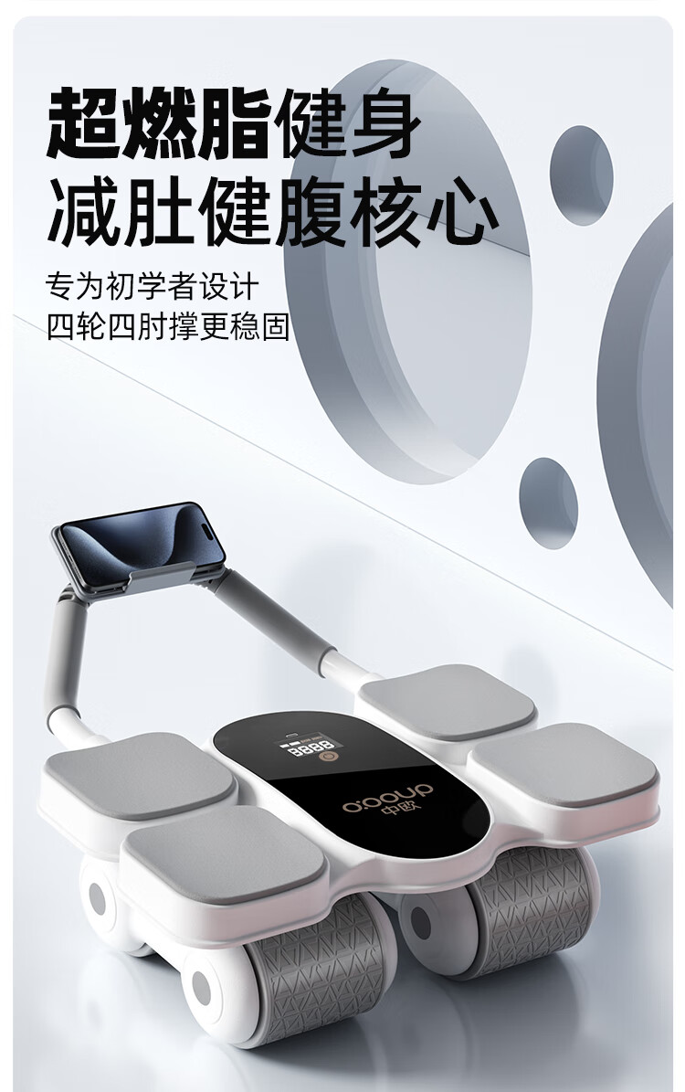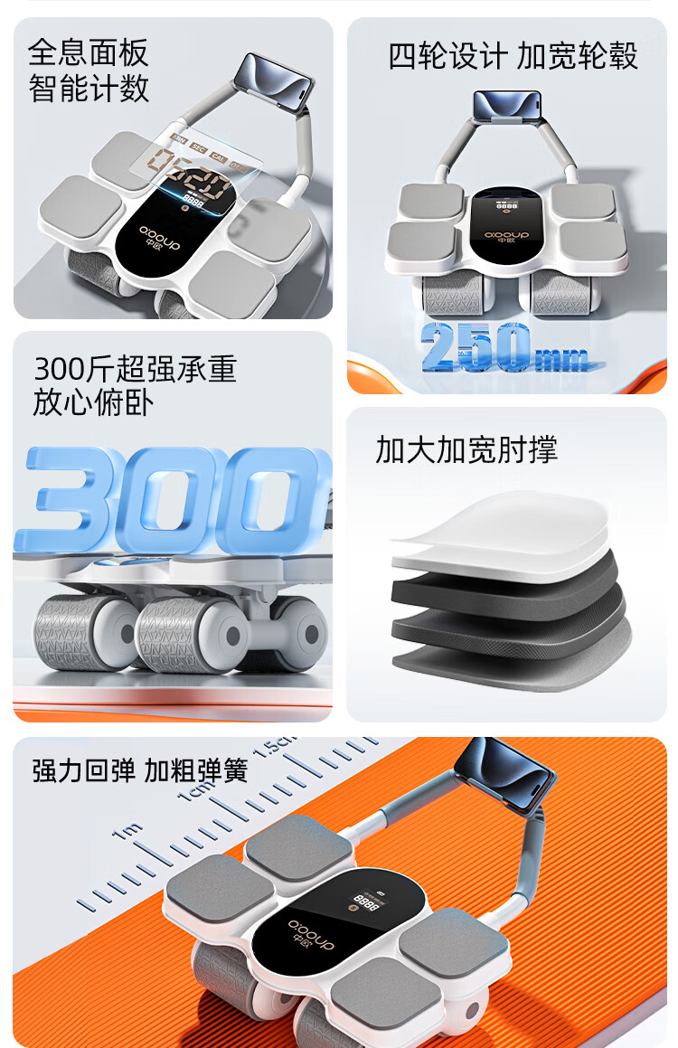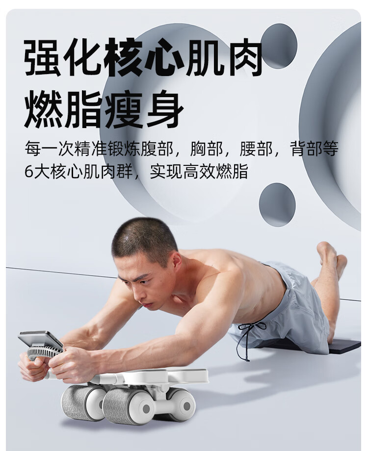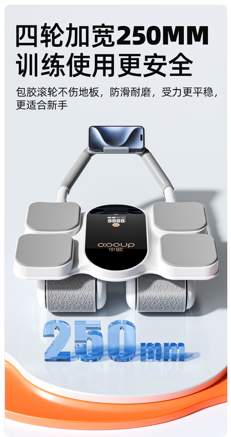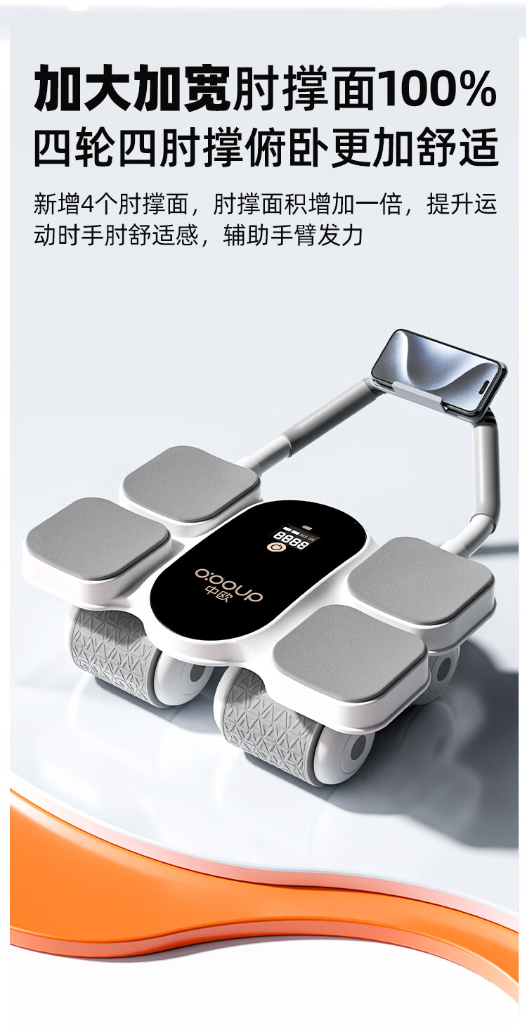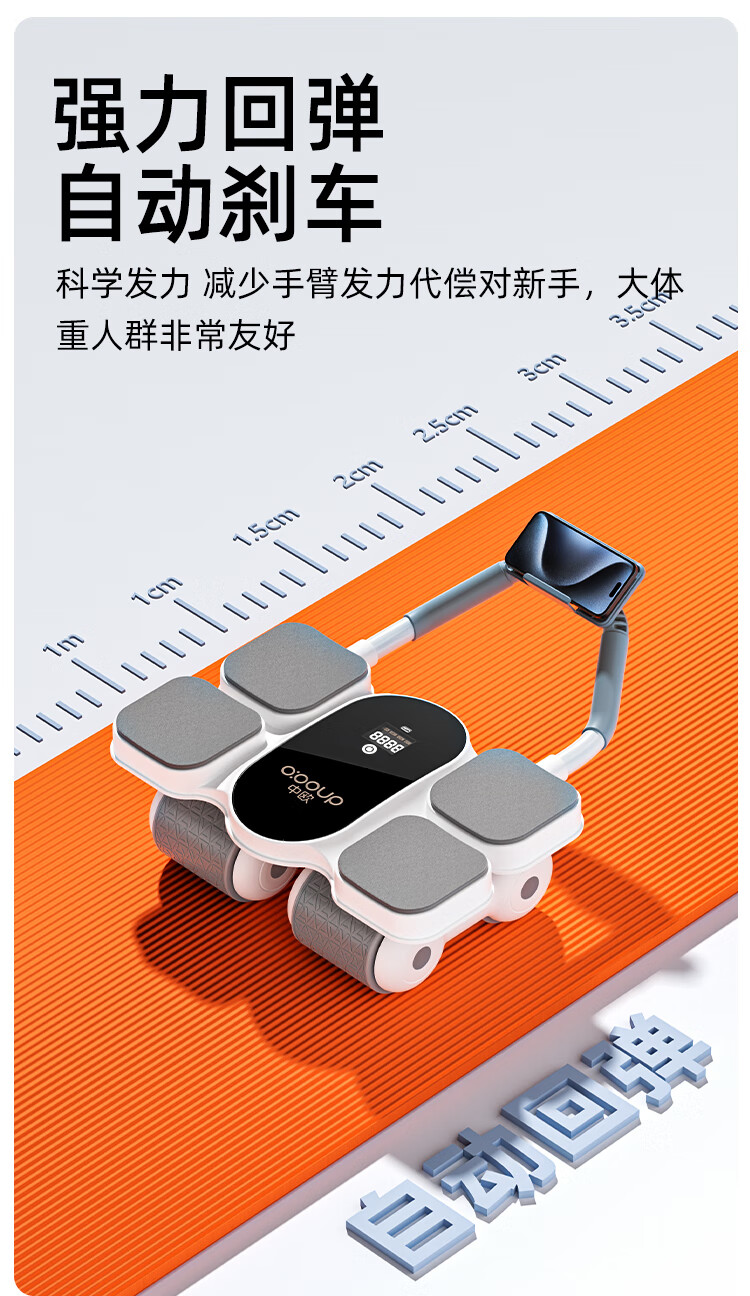 Central Europe 2026 New Automatic Rebound Abdominal Wheel Sports Equipment Abdominal Wheel Trainer Abdominal Wheel Men and Women Slim Belly Upgraded Four Wheels Four Elbow Support Model - Black Smart Rebound - Silent Anti-Slip_Timer_
