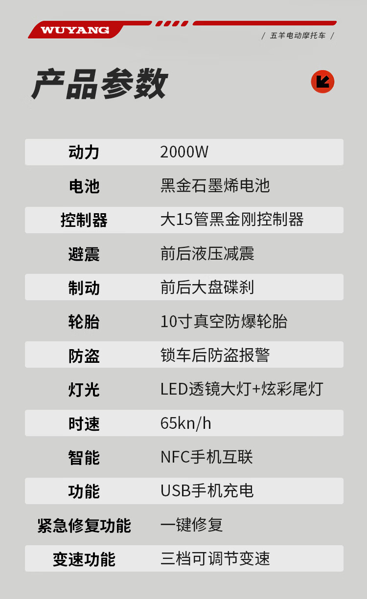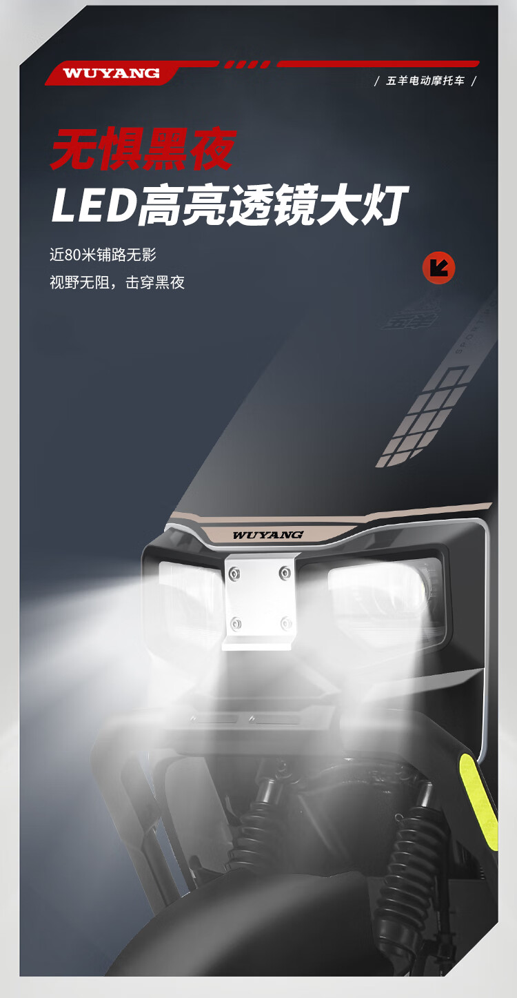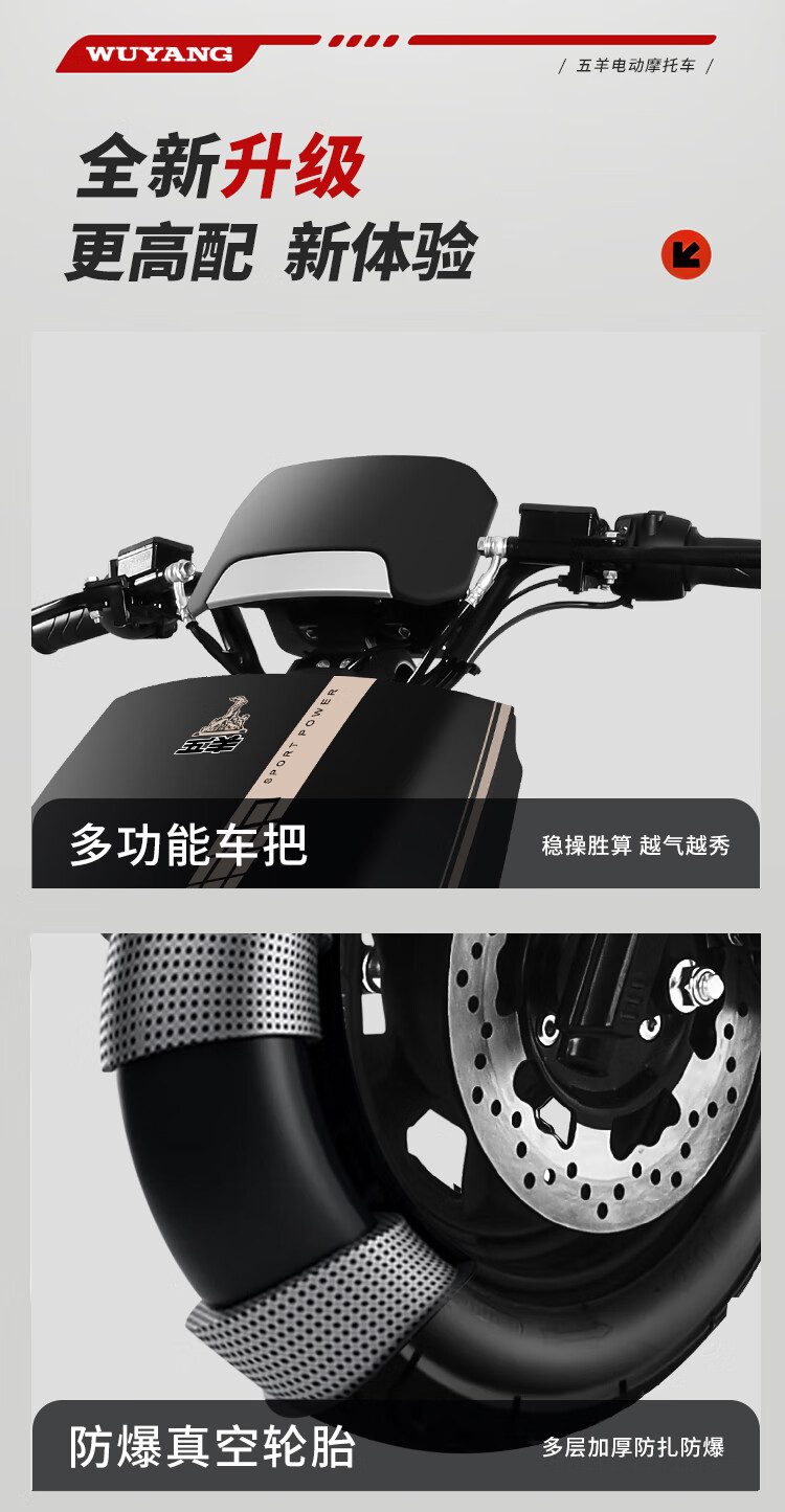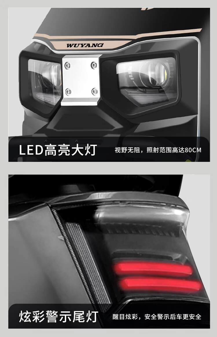 Wuyang Official Genuine Electric Motorcycle 2000W High Speed High Power Electric Motorcycle for Men and Women Two Wheeled Electric Motorcycle Mirror Black/Speed 70M/Front and Front Double Discs/Bar Box Version 72V35A/New Graphene Battery/Wooden Frame Shipped