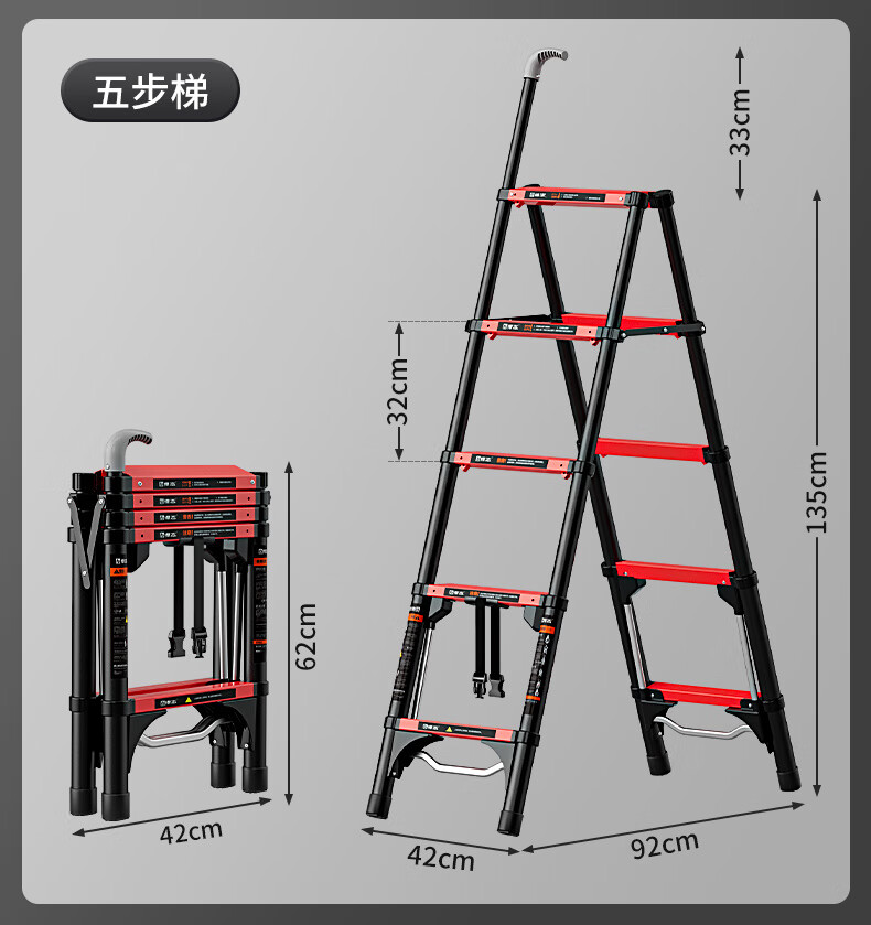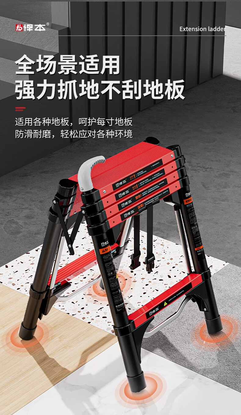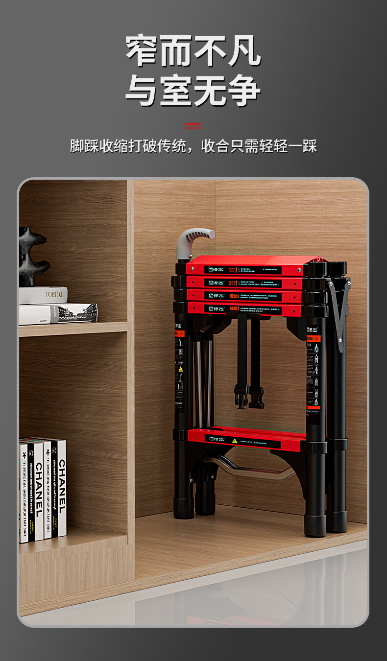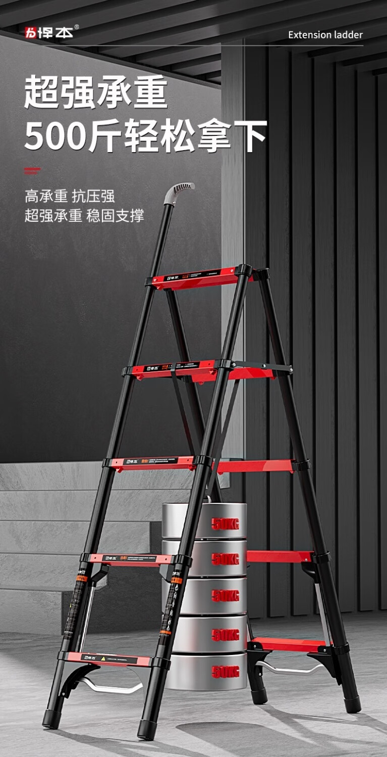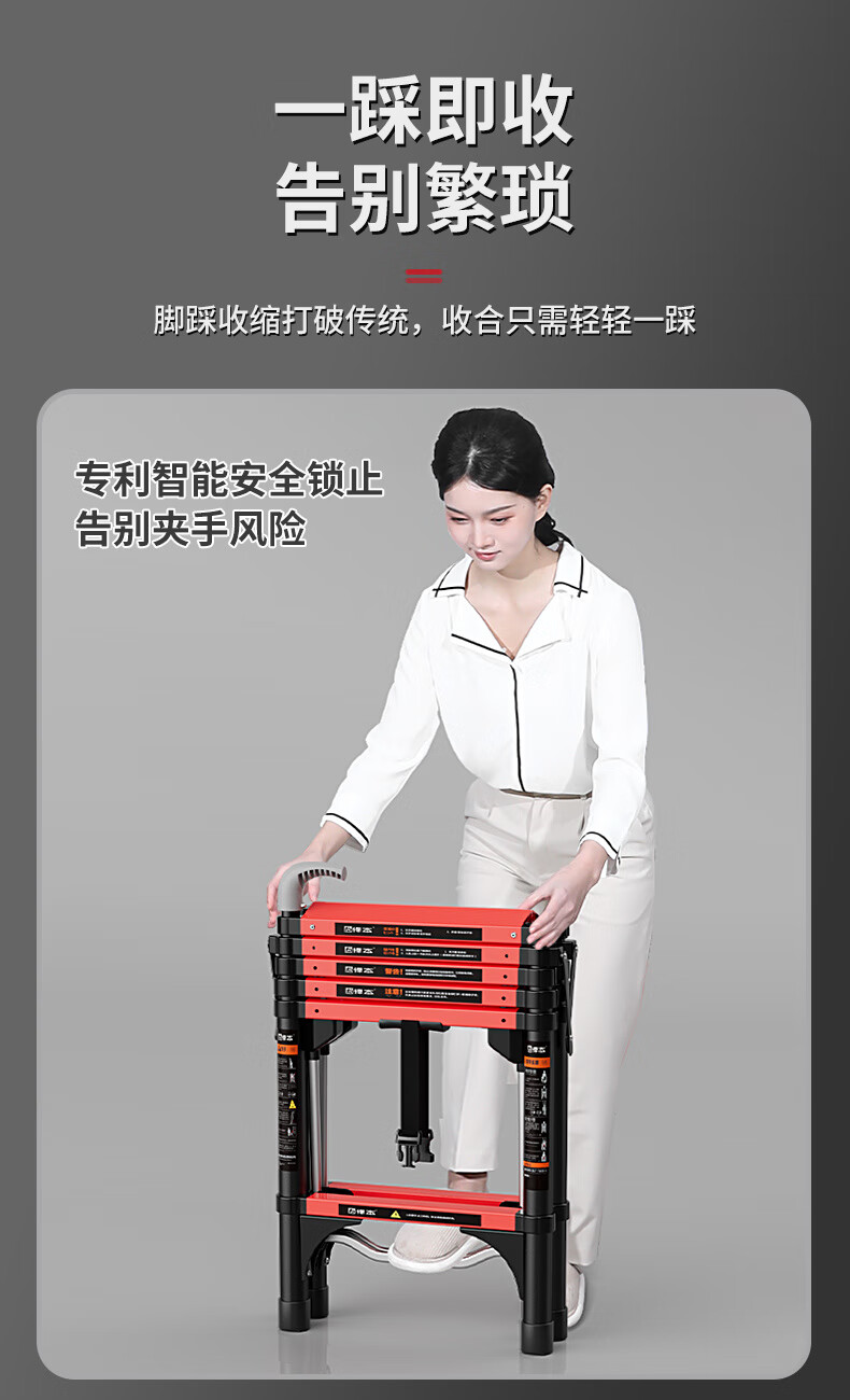 Household folding thickened telescopic ladder portable multi-functional engineering step ladder herringbone ladder can sit four steps suitable for a floor height of 2.8 meters Japanese heavyweight (treading fun + patented anti-sway) breaks the tradition with one step