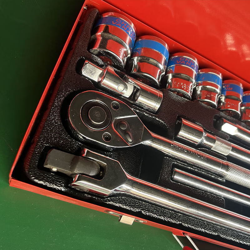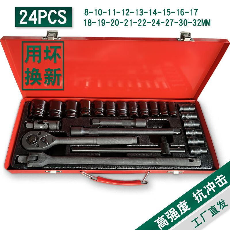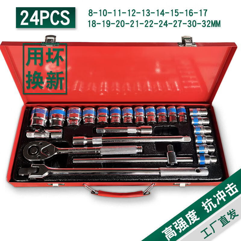 Pachin Dafei socket set, complete set of ratchet plate, quick wrench, heavy tool set, tool box, 24-piece iron box, F-rod auto repair set, phosphating version