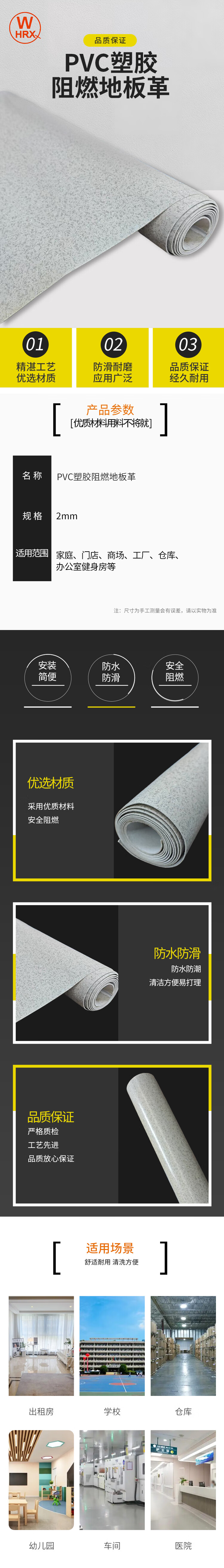 W HRX PVC plastic flame retardant floor leather 2.0mm square meter