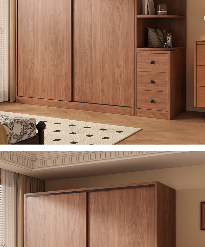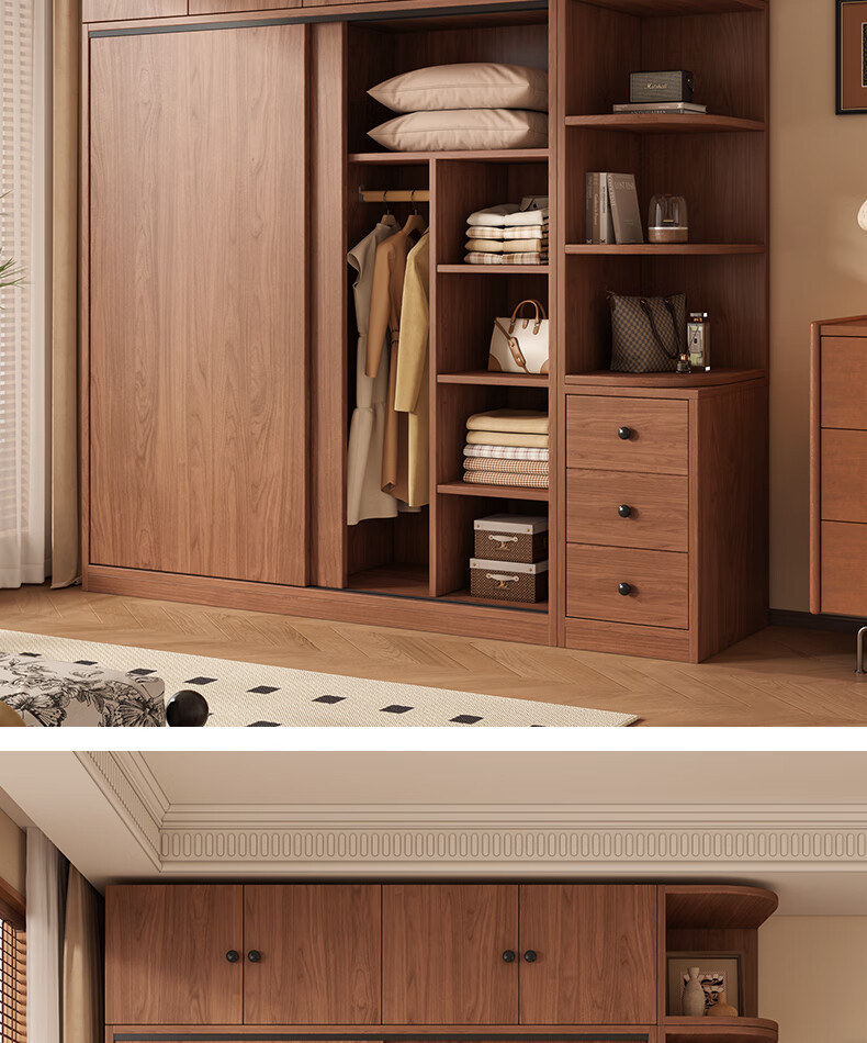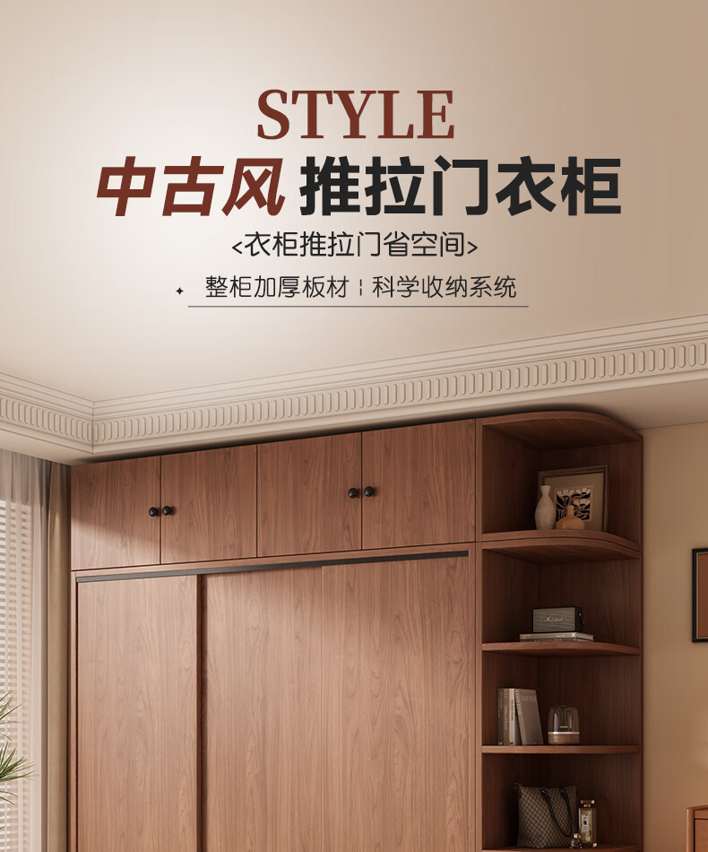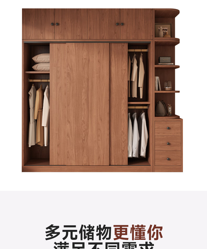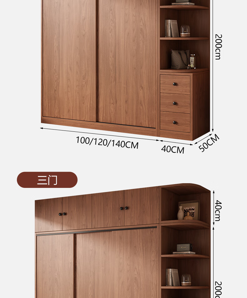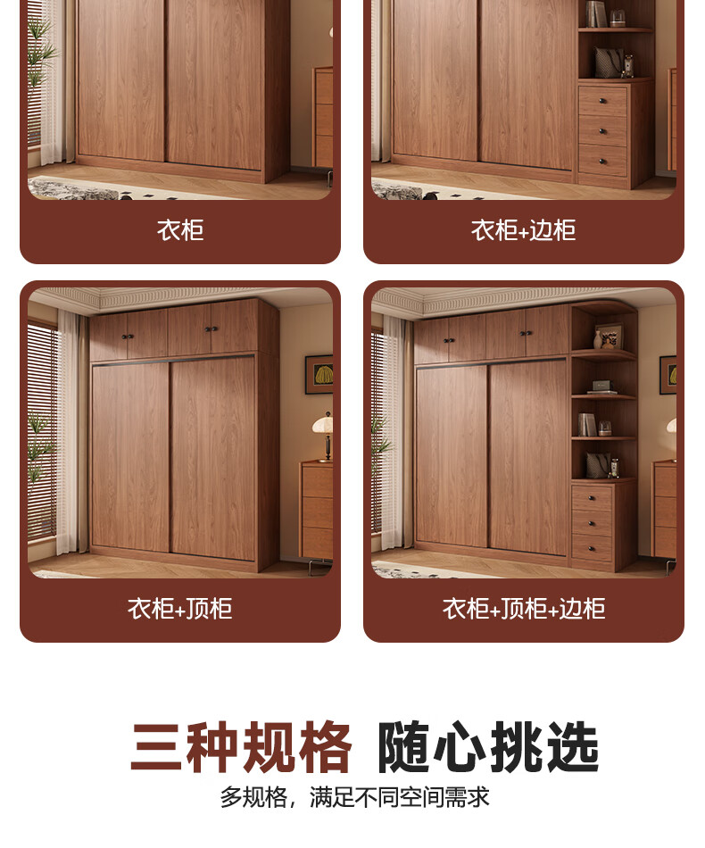 Guyuan Package Installation Wardrobe Bedroom Home New Chinese Style Storage Wardrobe Sliding Door Large Wardrobe 160*200*50 Main Cabinet + Top Cabinet + Side Cabinet