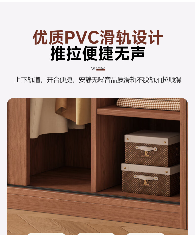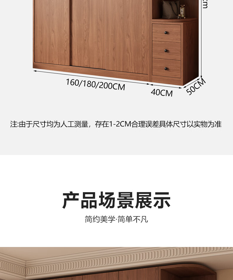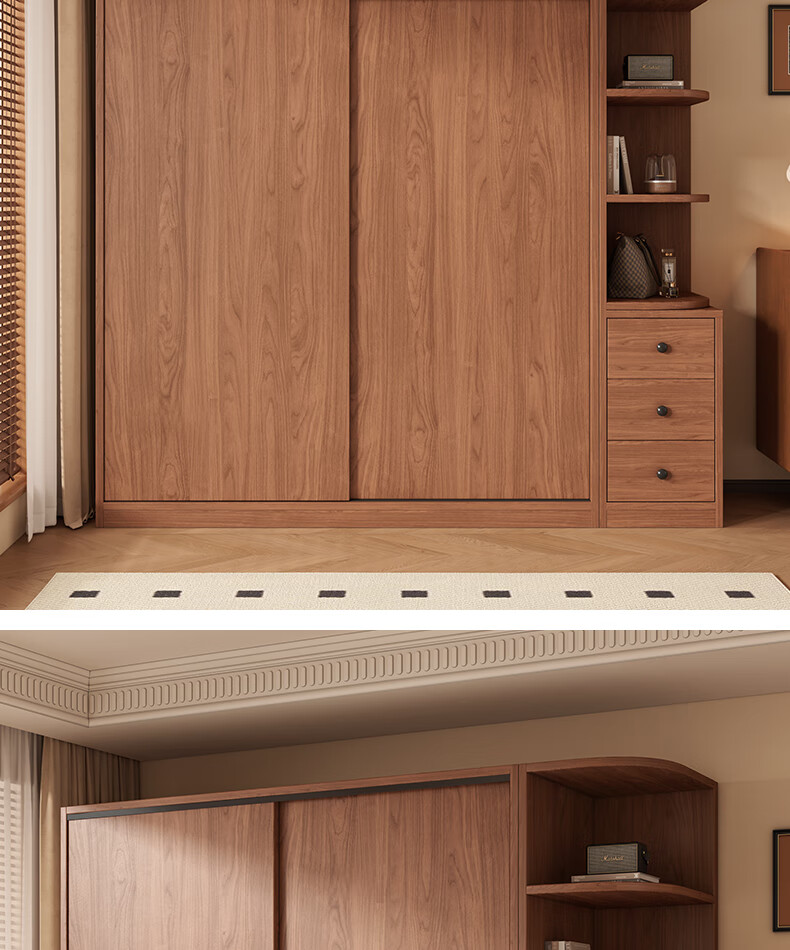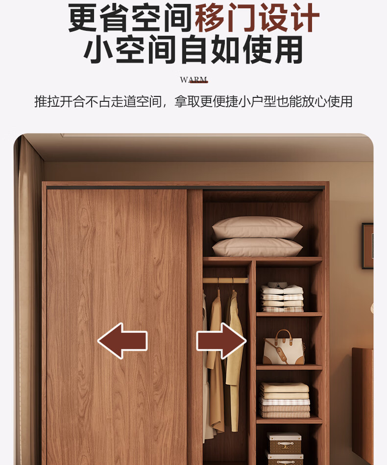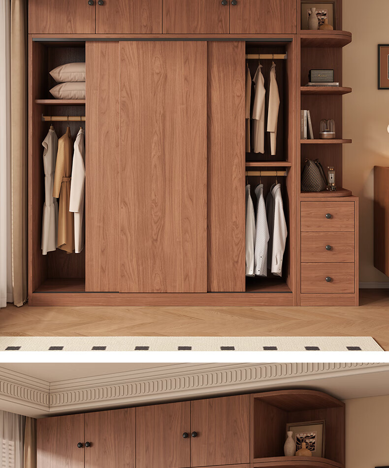 Guyuan Package Installation Wardrobe Bedroom Home New Chinese Style Storage Wardrobe Sliding Door Large Wardrobe 160*200*50 Main Cabinet + Top Cabinet + Side Cabinet