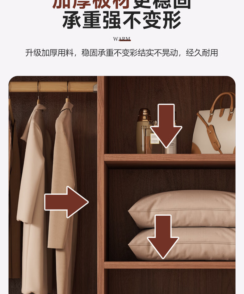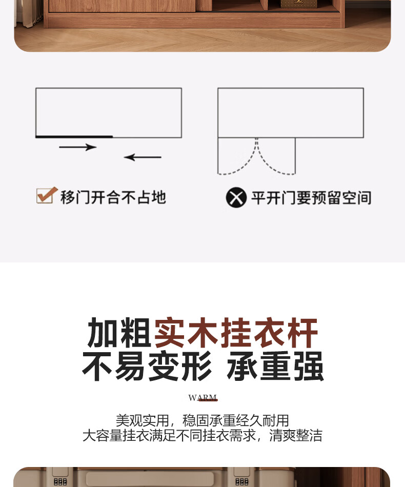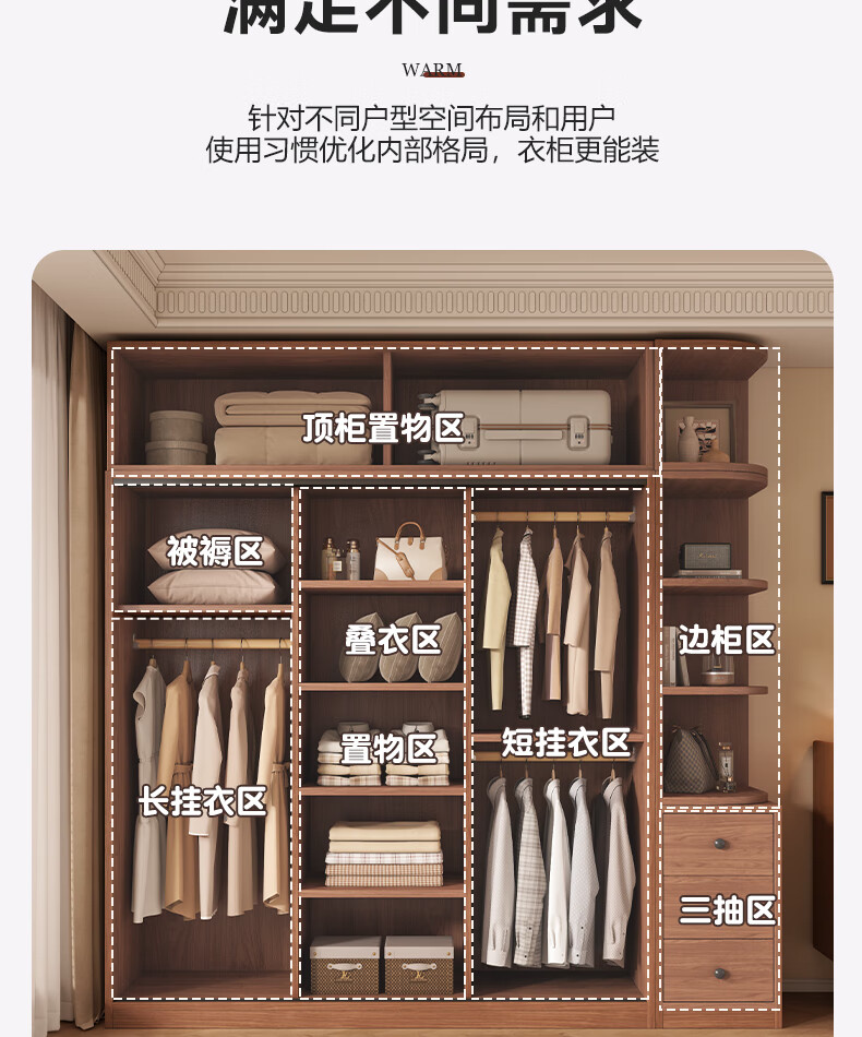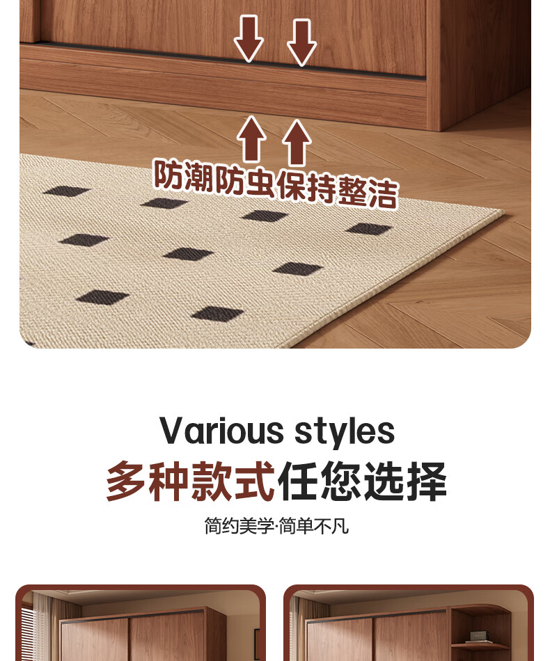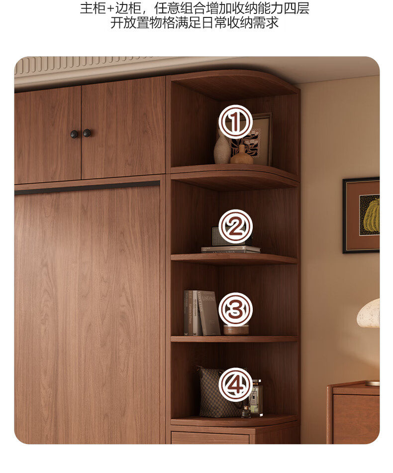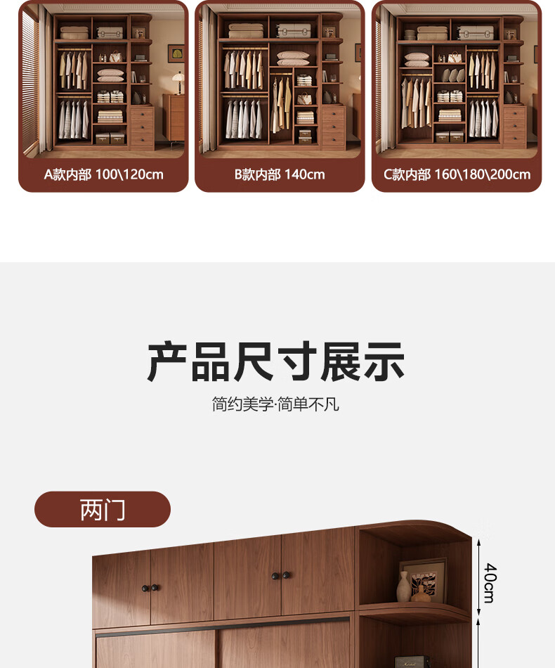 Guyuan Package Installation Wardrobe Bedroom Home New Chinese Style Storage Wardrobe Sliding Door Large Wardrobe 160*200*50 Main Cabinet + Top Cabinet + Side Cabinet