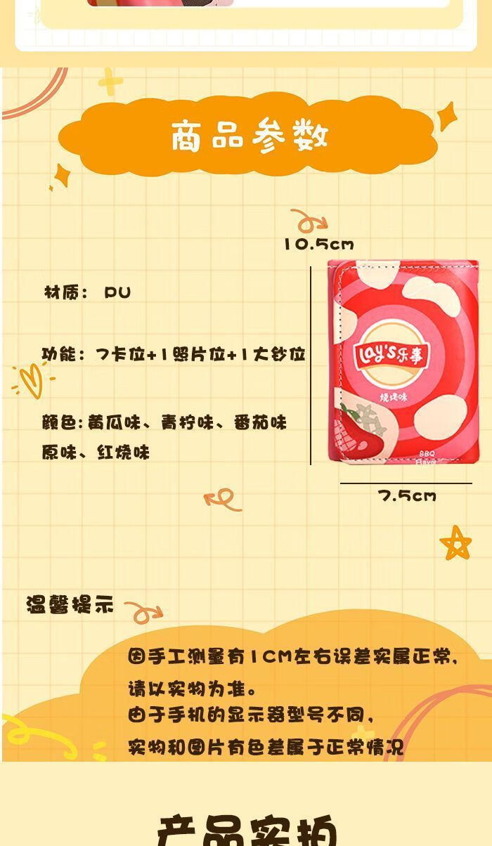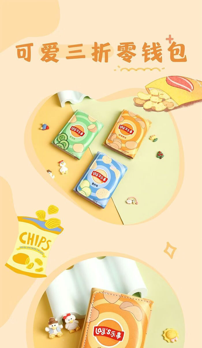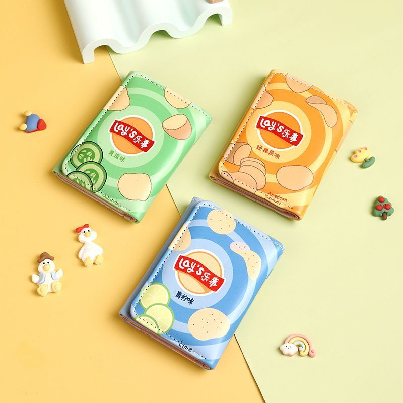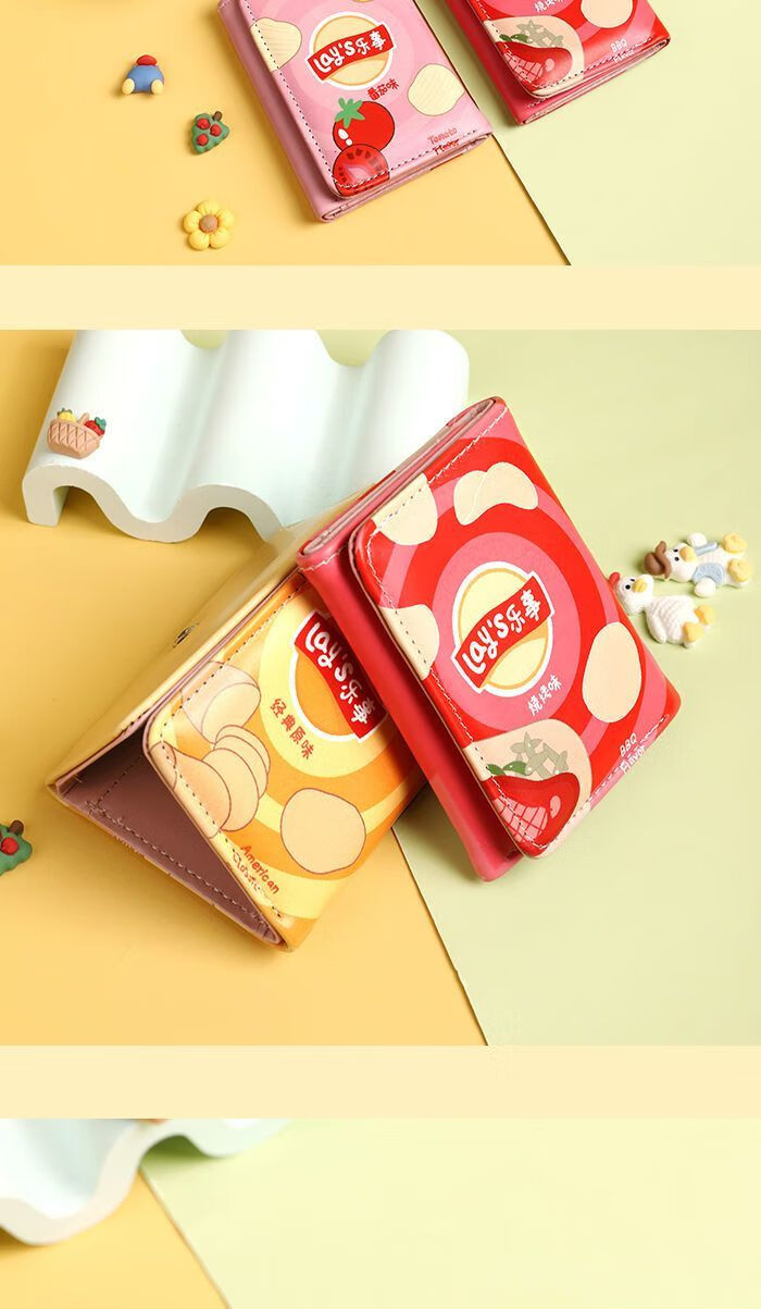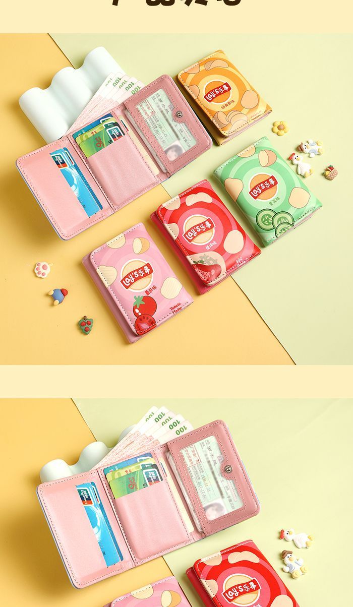 Ye Yuhenglan Lay's Potato Chips Tri-fold Wallet Women's Girls' Cute Small Coin Purse Short Pickup Bag Tomato Flavor-Tri-fold Material Upgrade-Waterproof/Anti-theft Brush/Anti-Degaussing