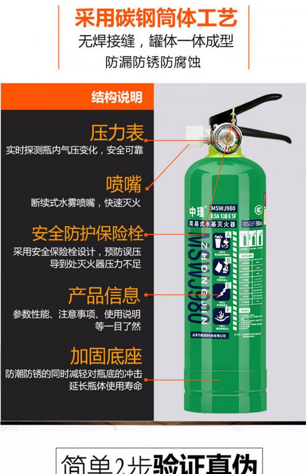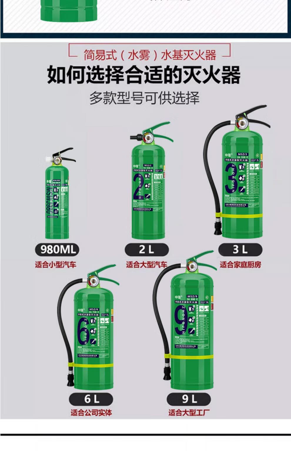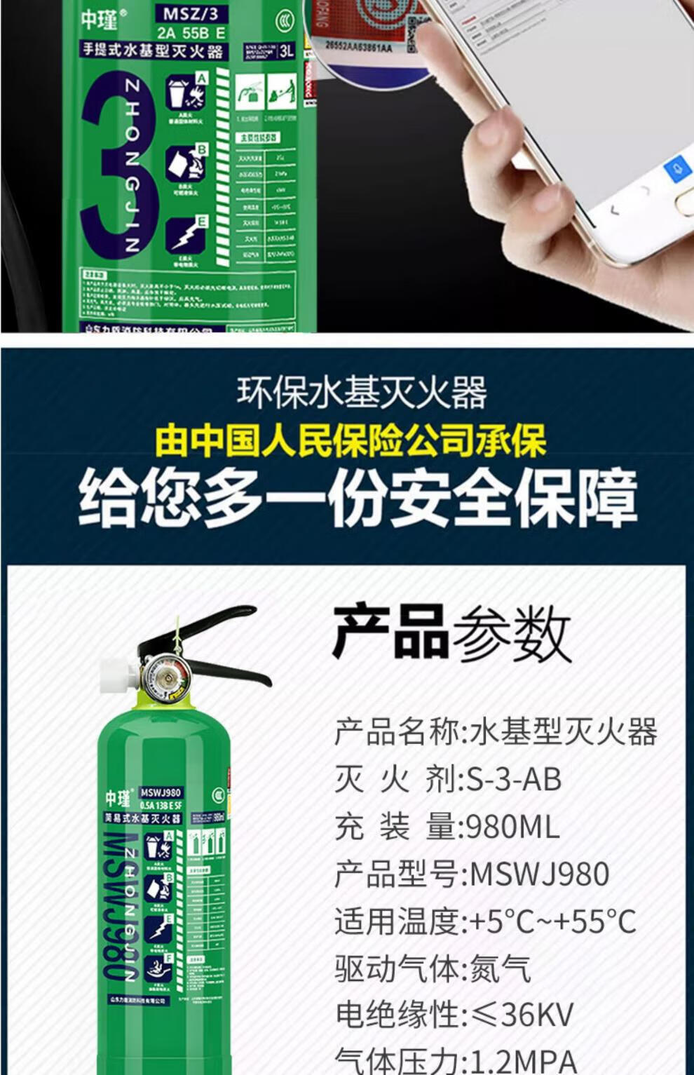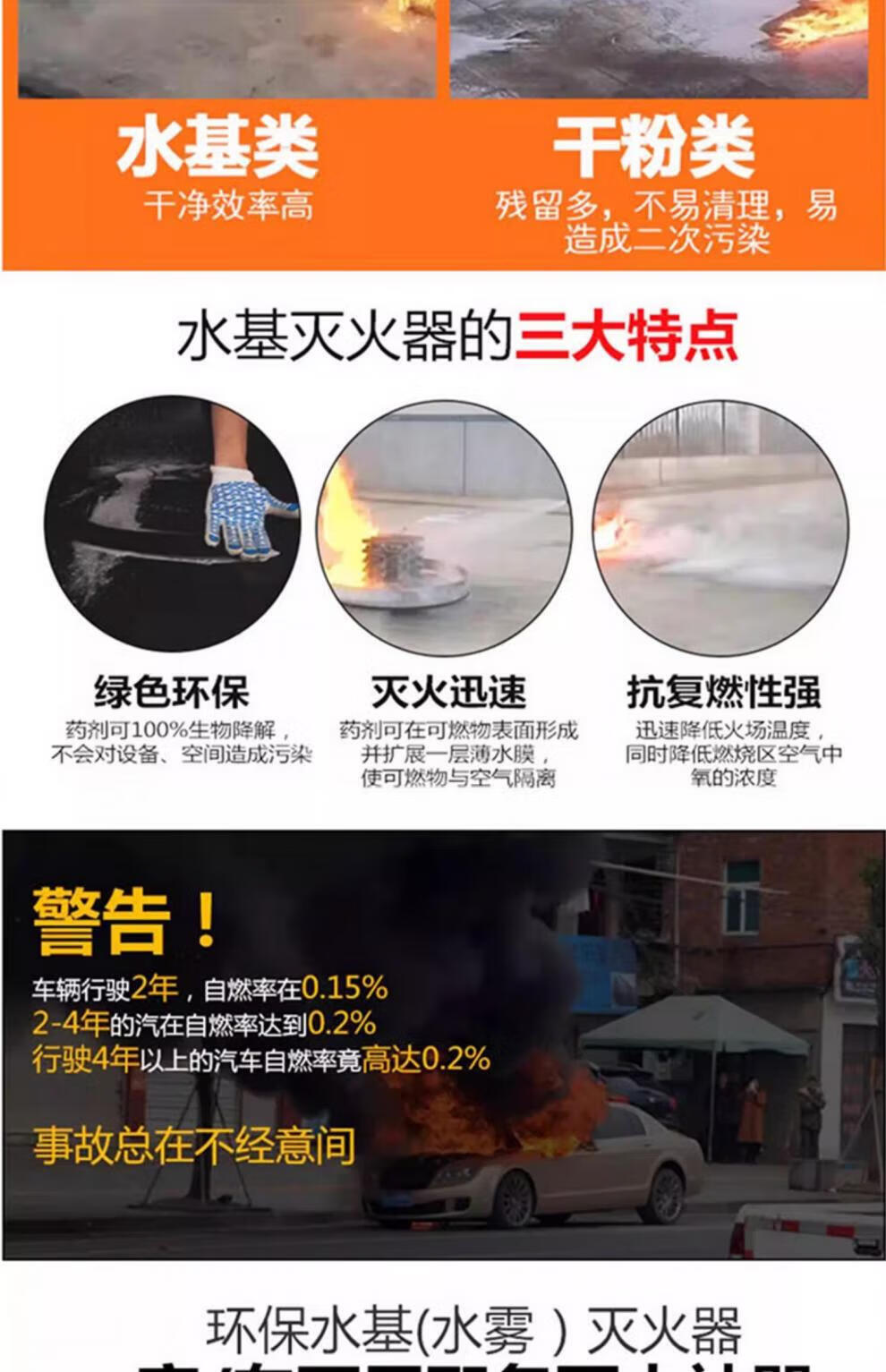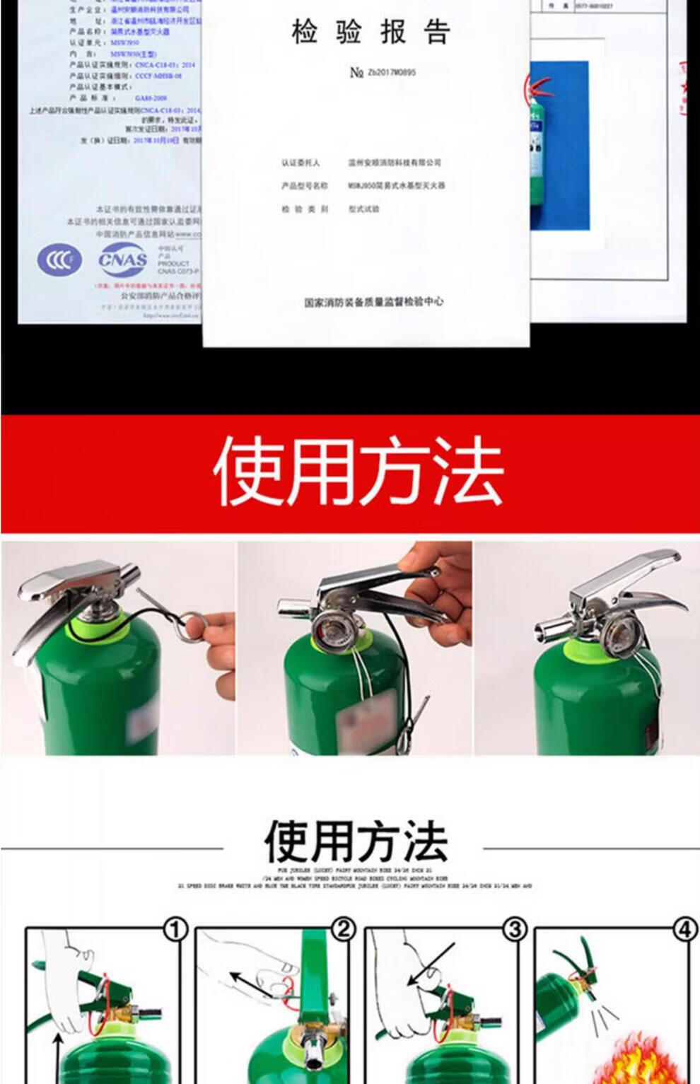 Water-based fire extinguisher for shop use, household vehicle firefighting 3L6L3 liter foam cart 4kg 3c certified 3L water-based fire extinguisher for extinguishing oil and electric fires 24-year national standard