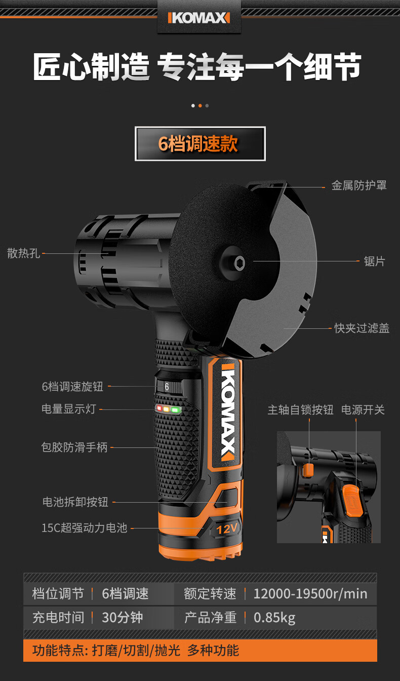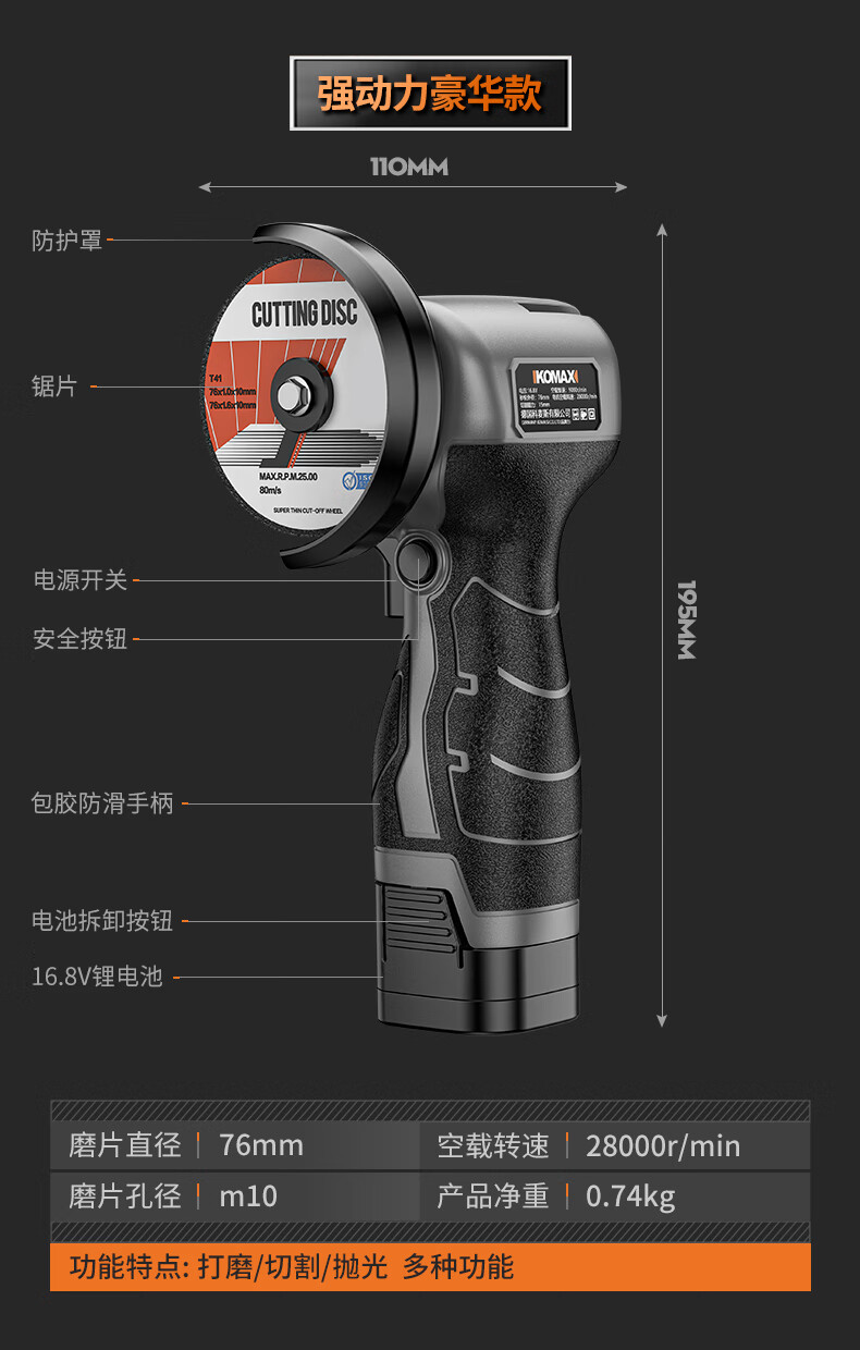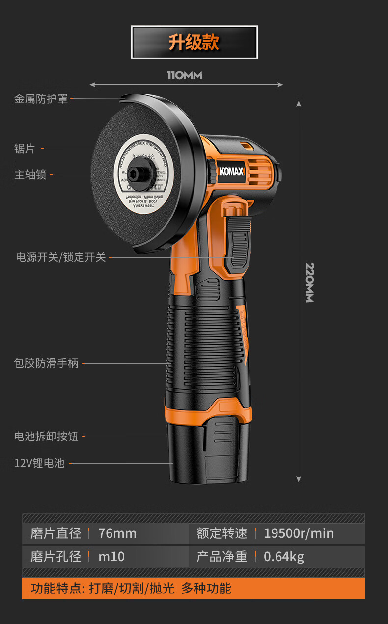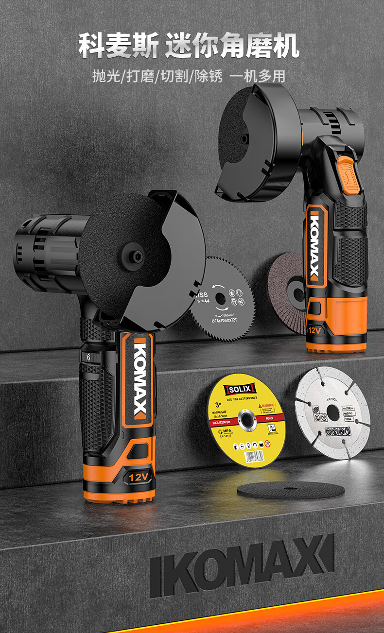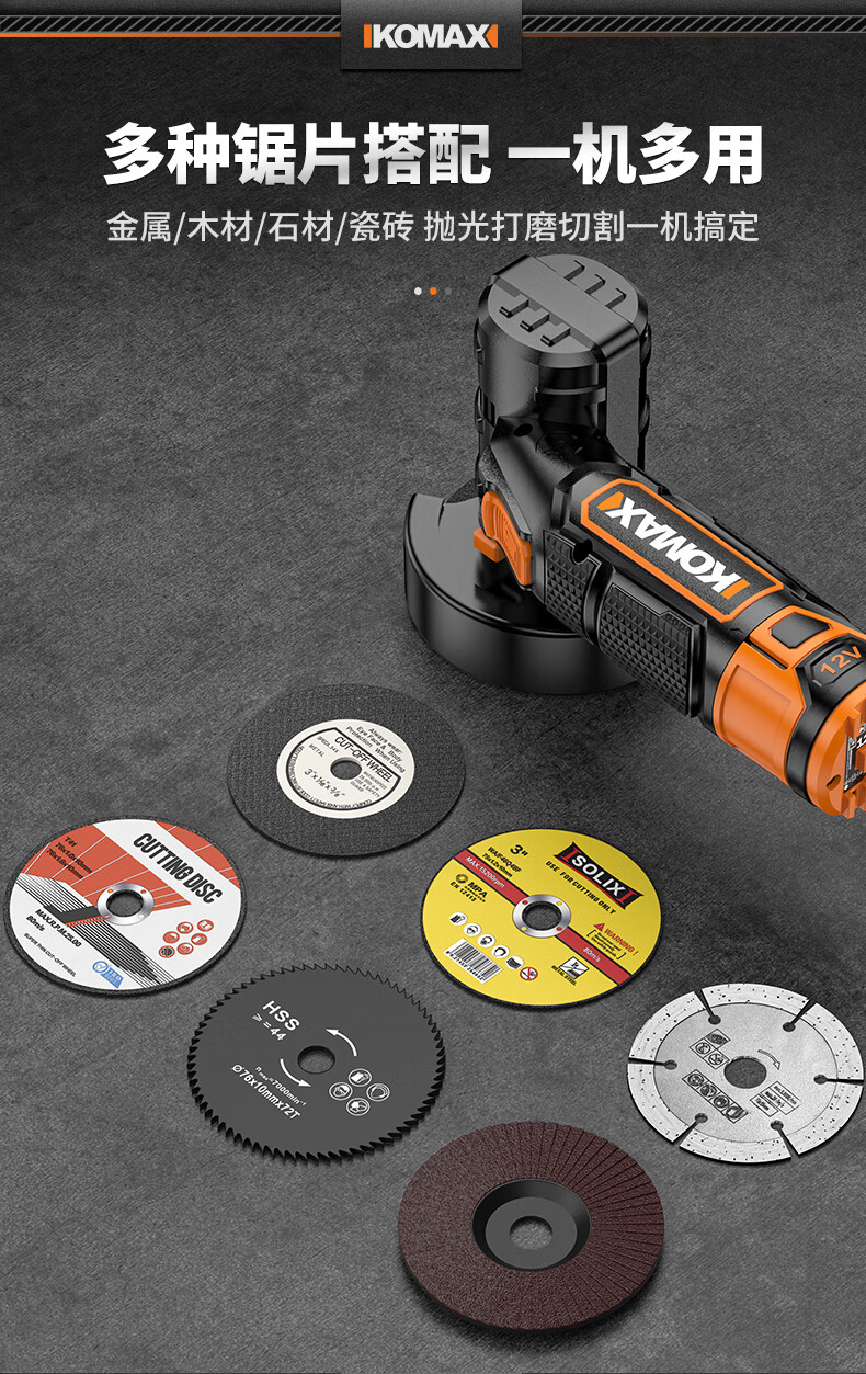 Komax mini angle grinder, rechargeable household grinder, multi-functional household seam cleaner, polisher, small electric cutting machine, upgraded standard, bare metal