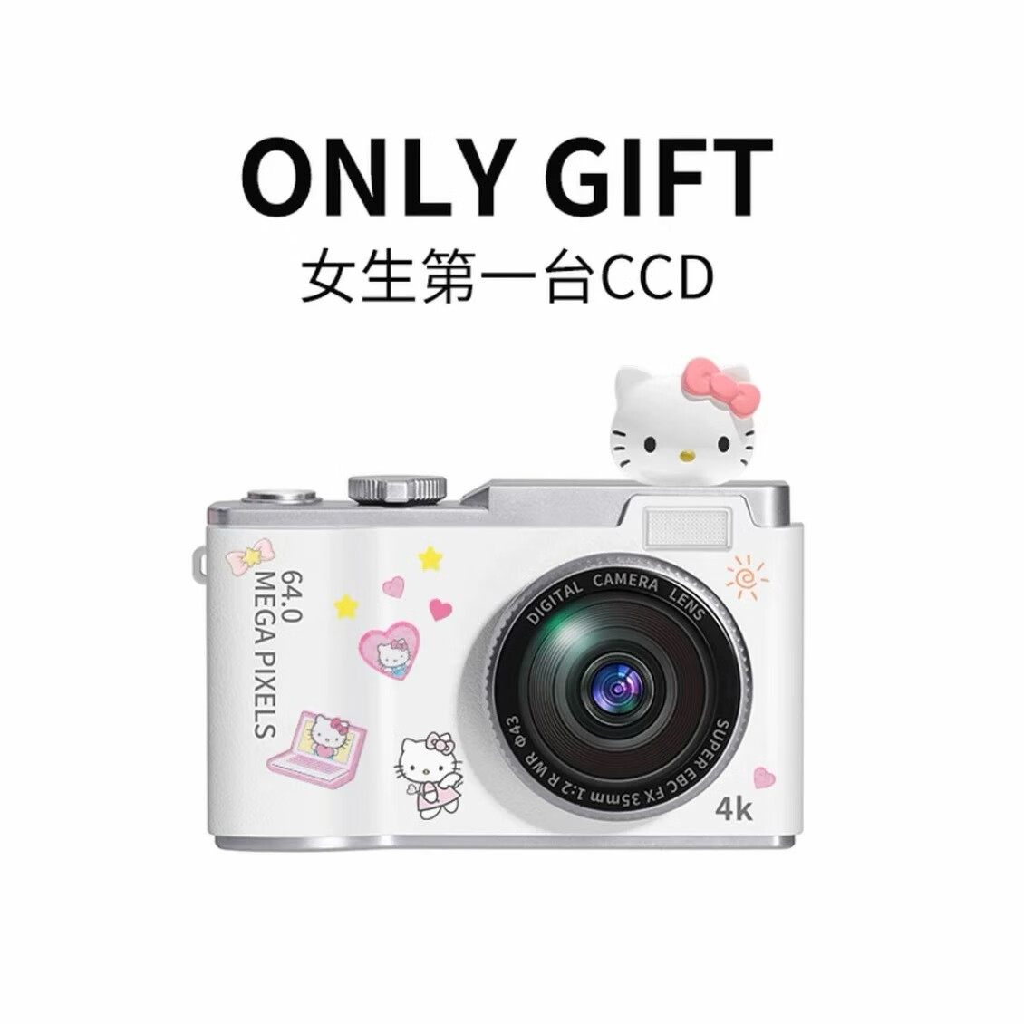 Hello kitty birthday gift for girls to give to their girlfriends, best friends, student party camera, retro ccd, Valentine's Day, New Year, pearl white + 128g memory + dual camera + lanyard + gift box