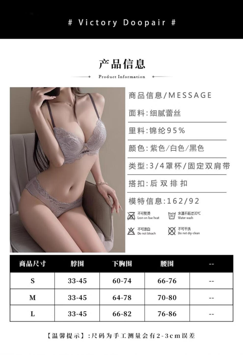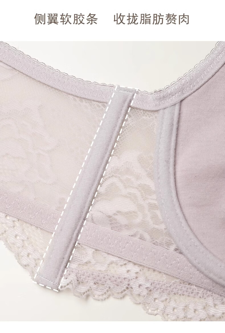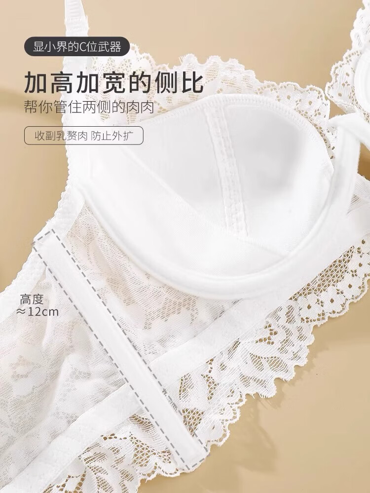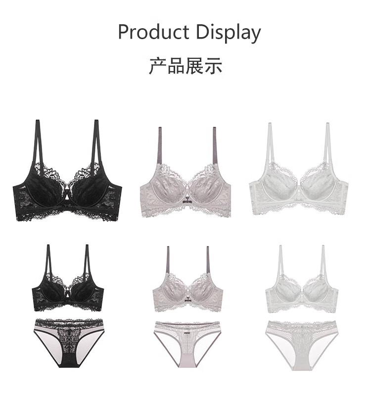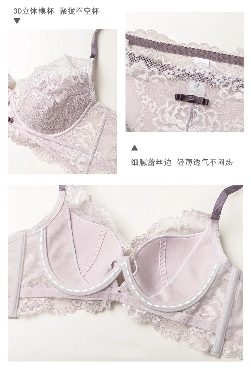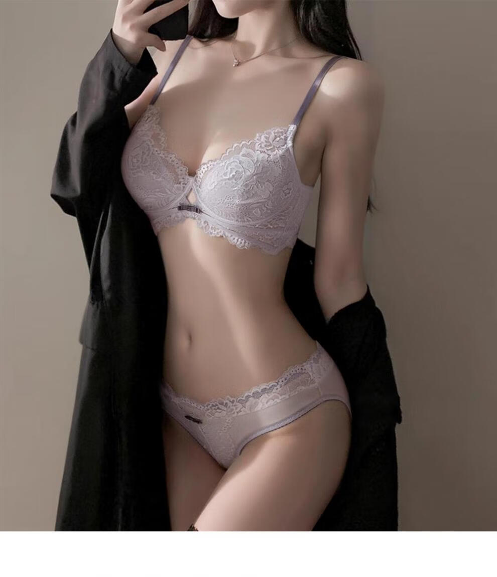 Markos International Brand French Sexy Lace Underwear Women's Thin Large Breasts Show Small Anti-Sagging Large Size Pure Desire Bra Set Gray Purple Set 70B