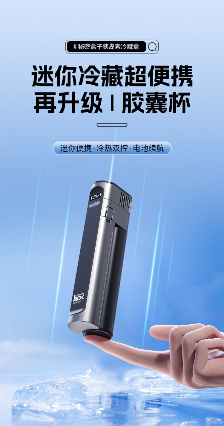 Secret Box Insulin Refrigerator Box Rechargeable Portable Mini Car Refrigerator Can Go On Airplane Medication Refrigerator Cup Refrigerator Box Single Refrigeration X8+1 Battery 36H Battery Life 0.2L