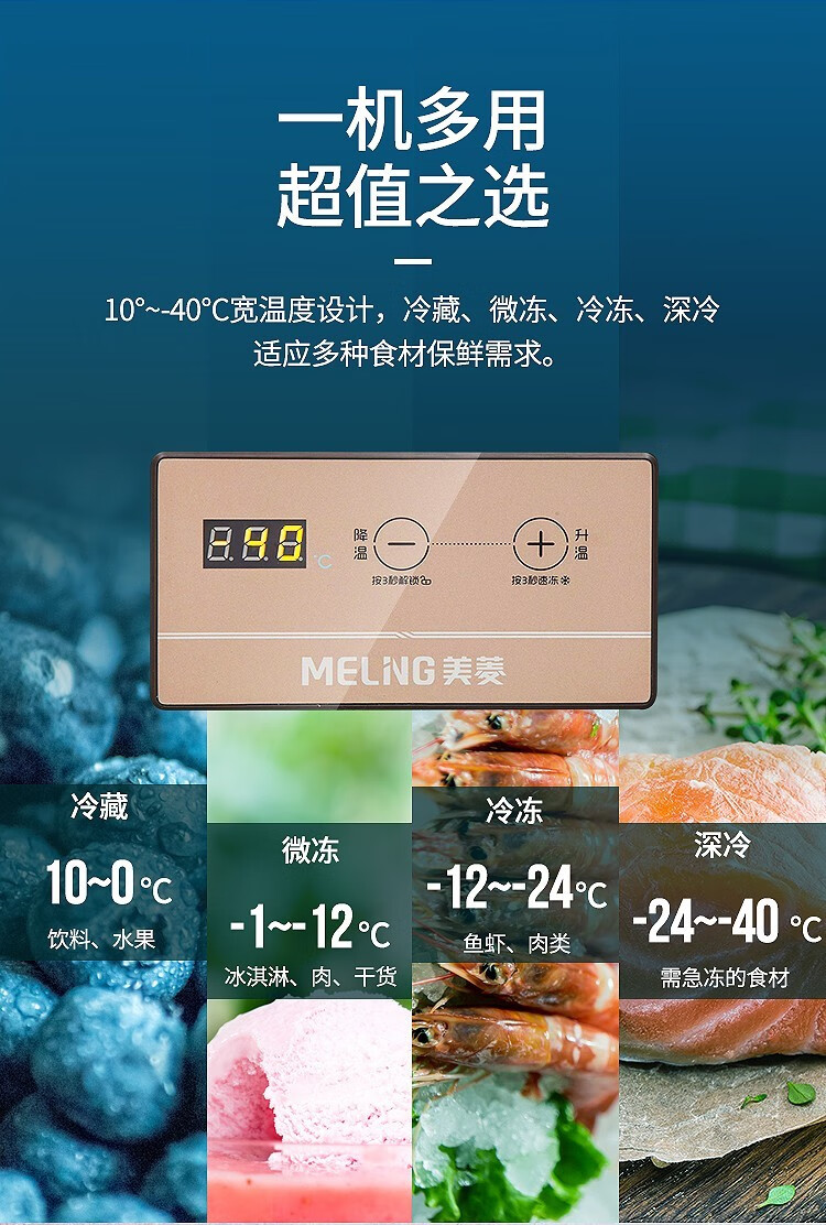 Meiling 418/528/738 liter commercial large-capacity freezer refrigerated to freezer horizontal freezer deep cooling quick freezing 798LDE electronic control-40 MLS odor removal and sterilization