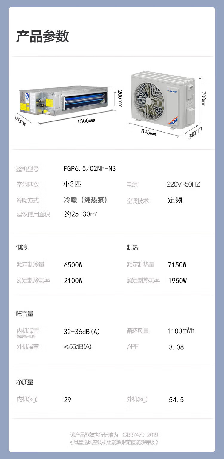 Gree (GREE) 3 HP duct machine one-to-one heating and cooling central air conditioner embedded home commercial office living room thin ceiling air conditioner fixed frequency C2 variable frequency C3 series low noise and energy saving subsidy 1 HP larger package heating and cooling cost-effective - bare machine price does not include installation