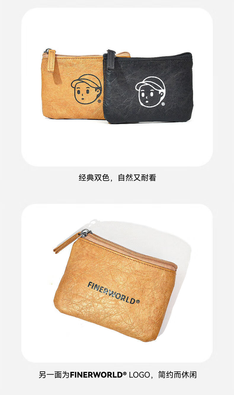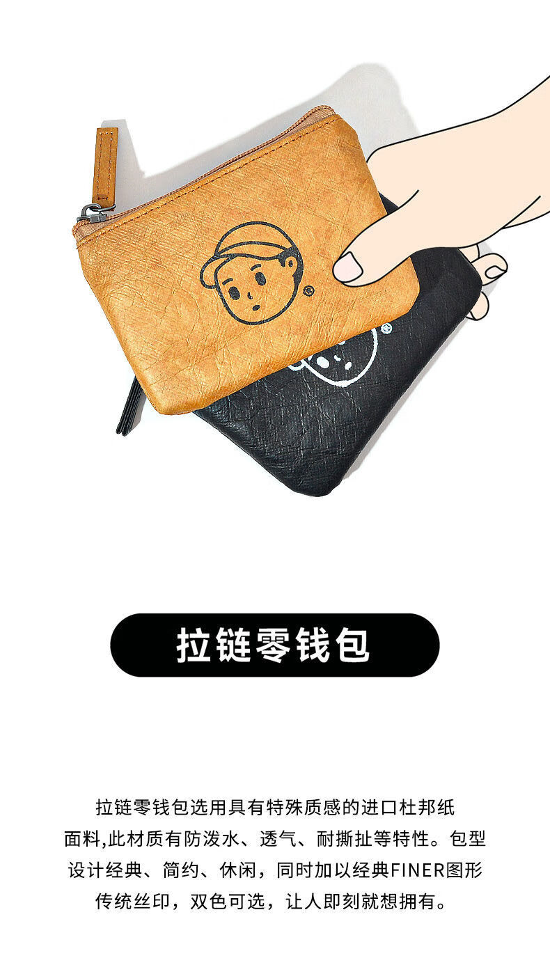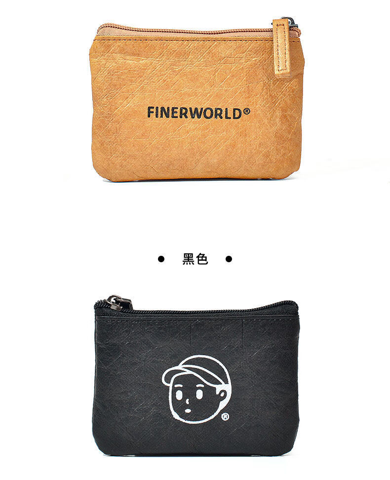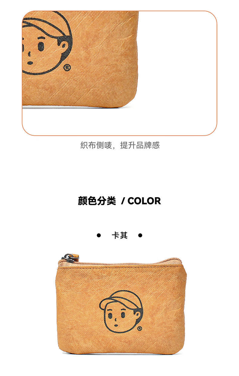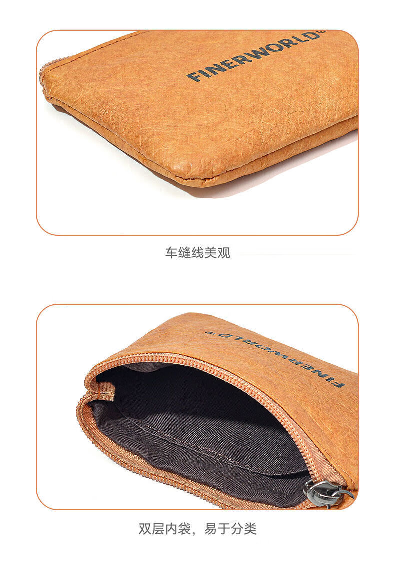 Henglan.Dupont paper washable kraft paper zipper coin purse simple short large capacity super practical small wallet khaki zipper bag