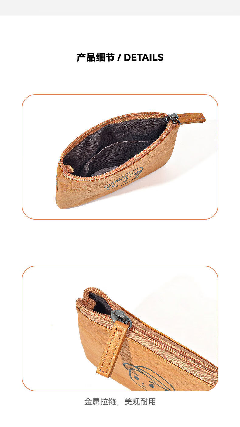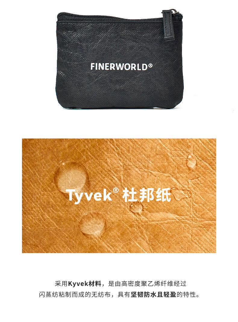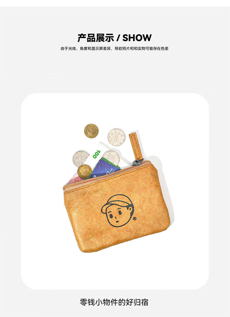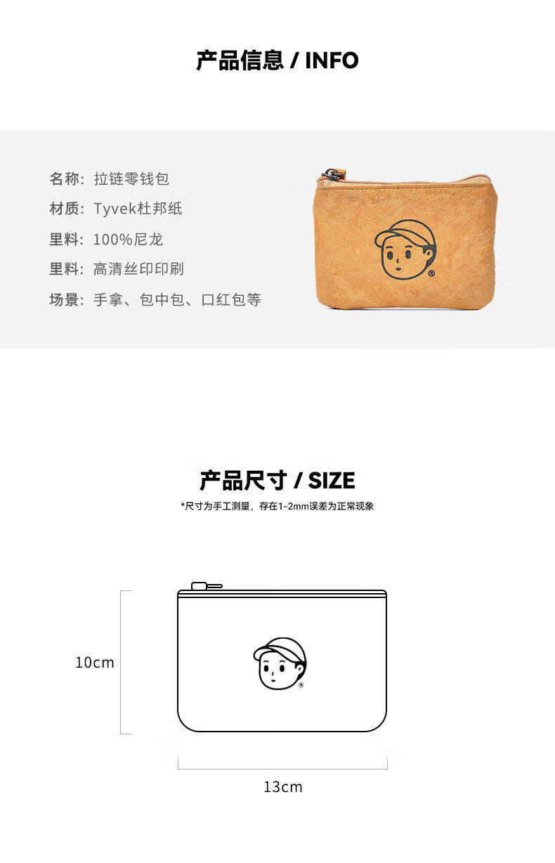 Henglan.Dupont paper washable kraft paper zipper coin purse simple short large capacity super practical small wallet khaki zipper bag