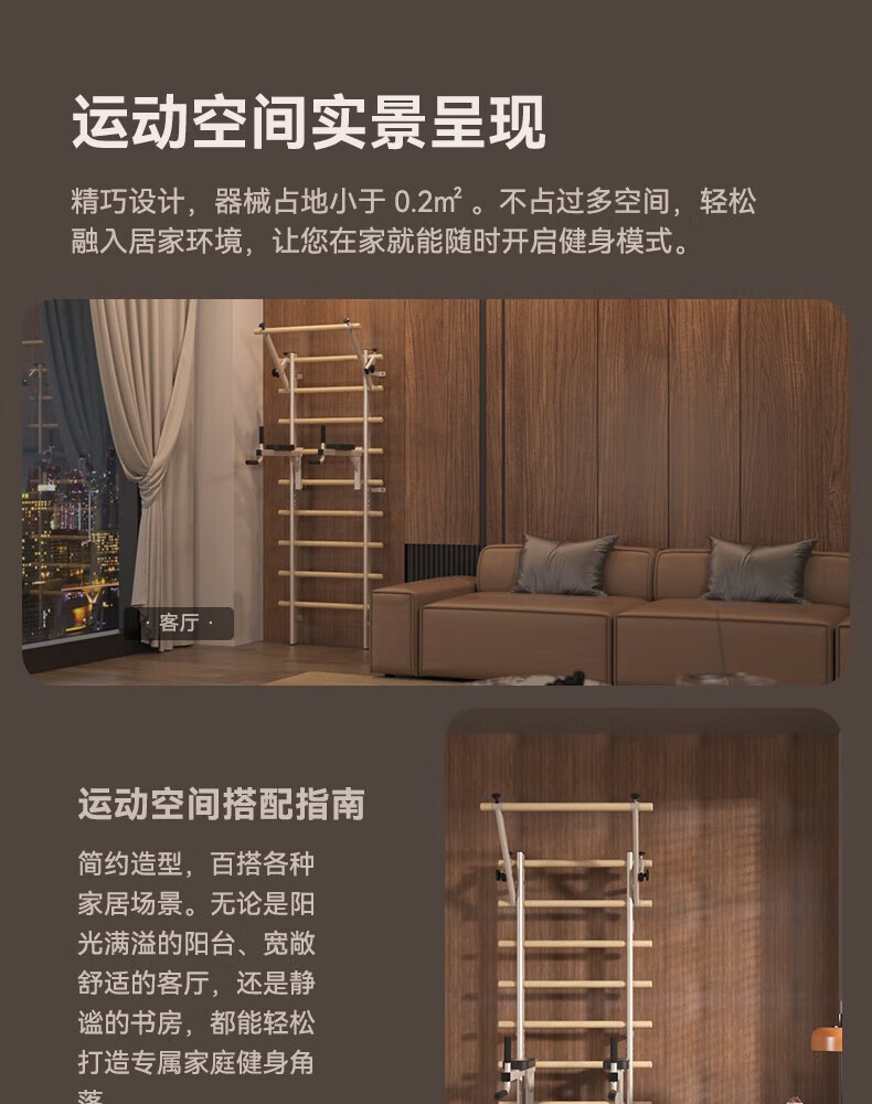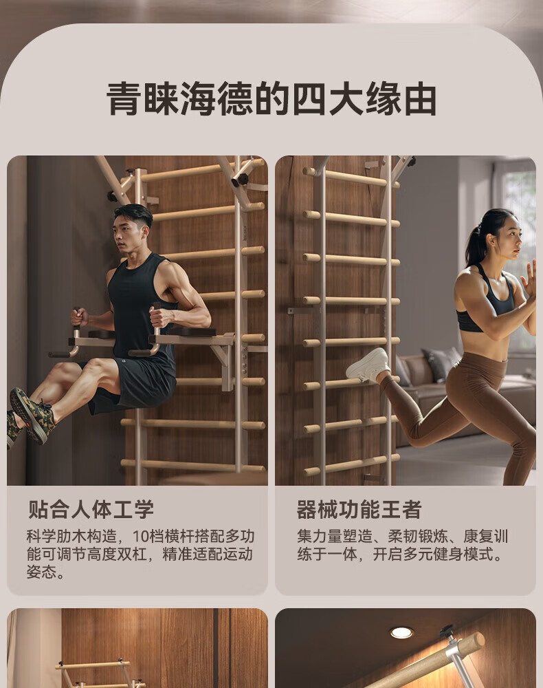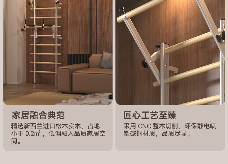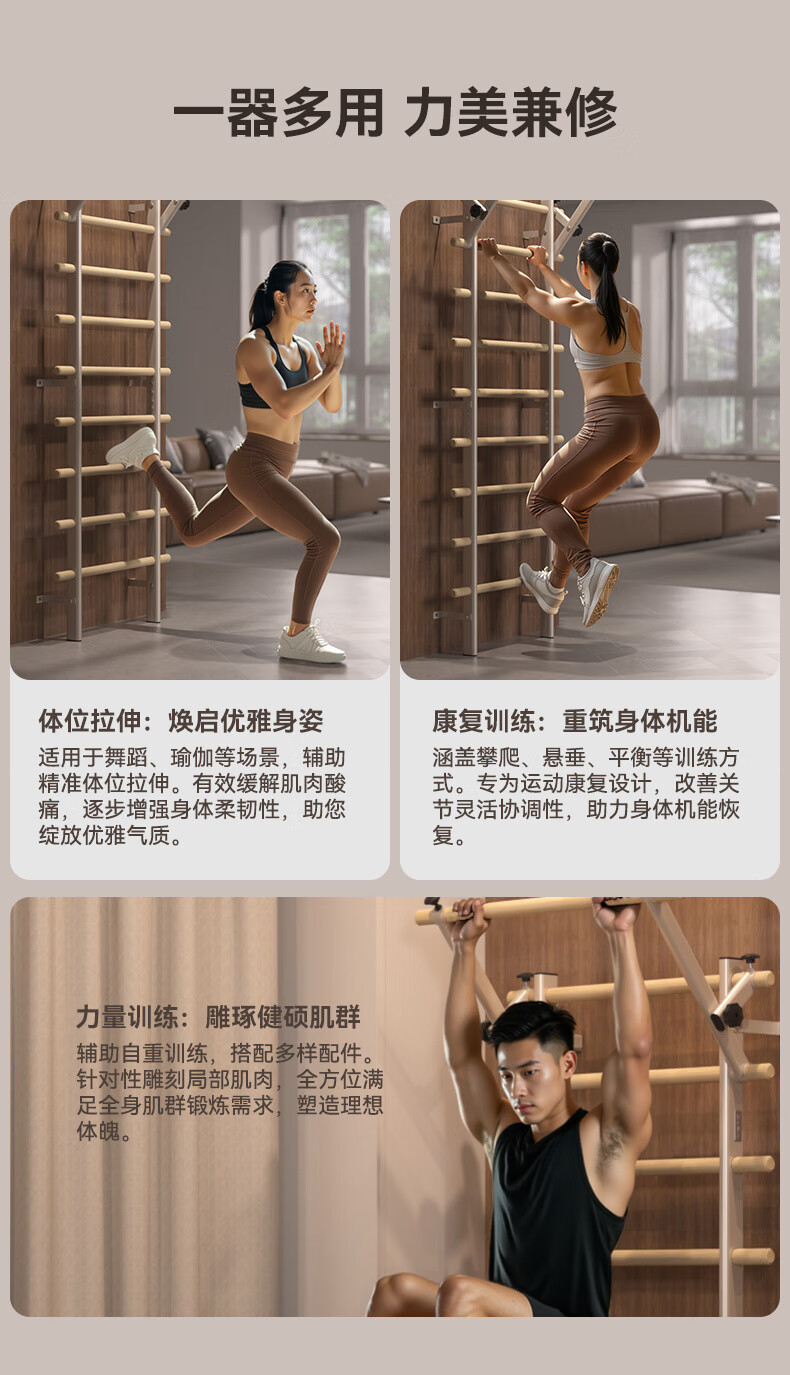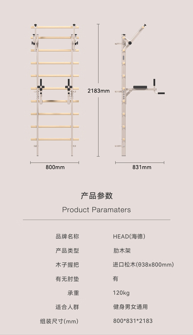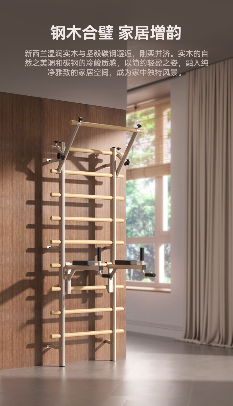 HEAD Rib Wood Frame Pull-Ups Horizontal Bar Home Multifunctional Rehabilitation Leg Press Stretch Frame Fashionable Milk Cafe/Imported Pine Wood Rib Wood Frame